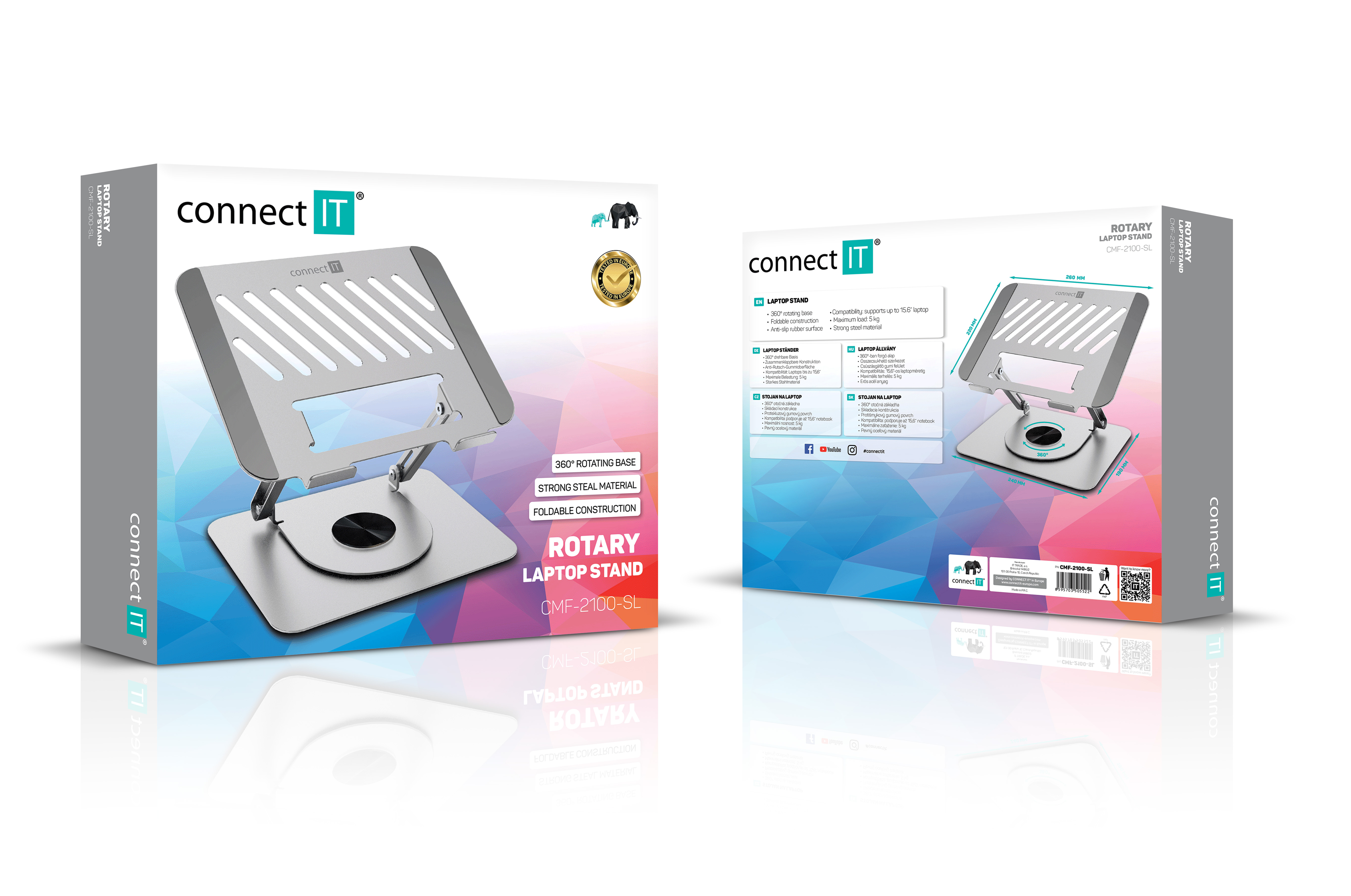 CONNECT IT Rotary otočný stojánek na notebook, STŘÍBRNÁ