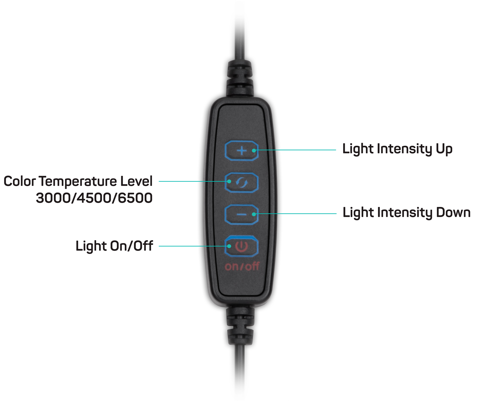 Absolutní svobodu nastavení požadovaného úhlu garantuje kulová hlava. Barevnou teplotu světla je možno nastavit od studené až po teplou ve třech úrovních. Držák mobilního telefonu umístěný na flexibilním husím krku umožňuje pohodlné nastavení do libovolného snímacího úhlu fotografií a videí. Ve výbavě nechybí dálkový ovladač pro vypnutí/zapnutí světla, nastavení jeho intenzity nebo barevné teploty.