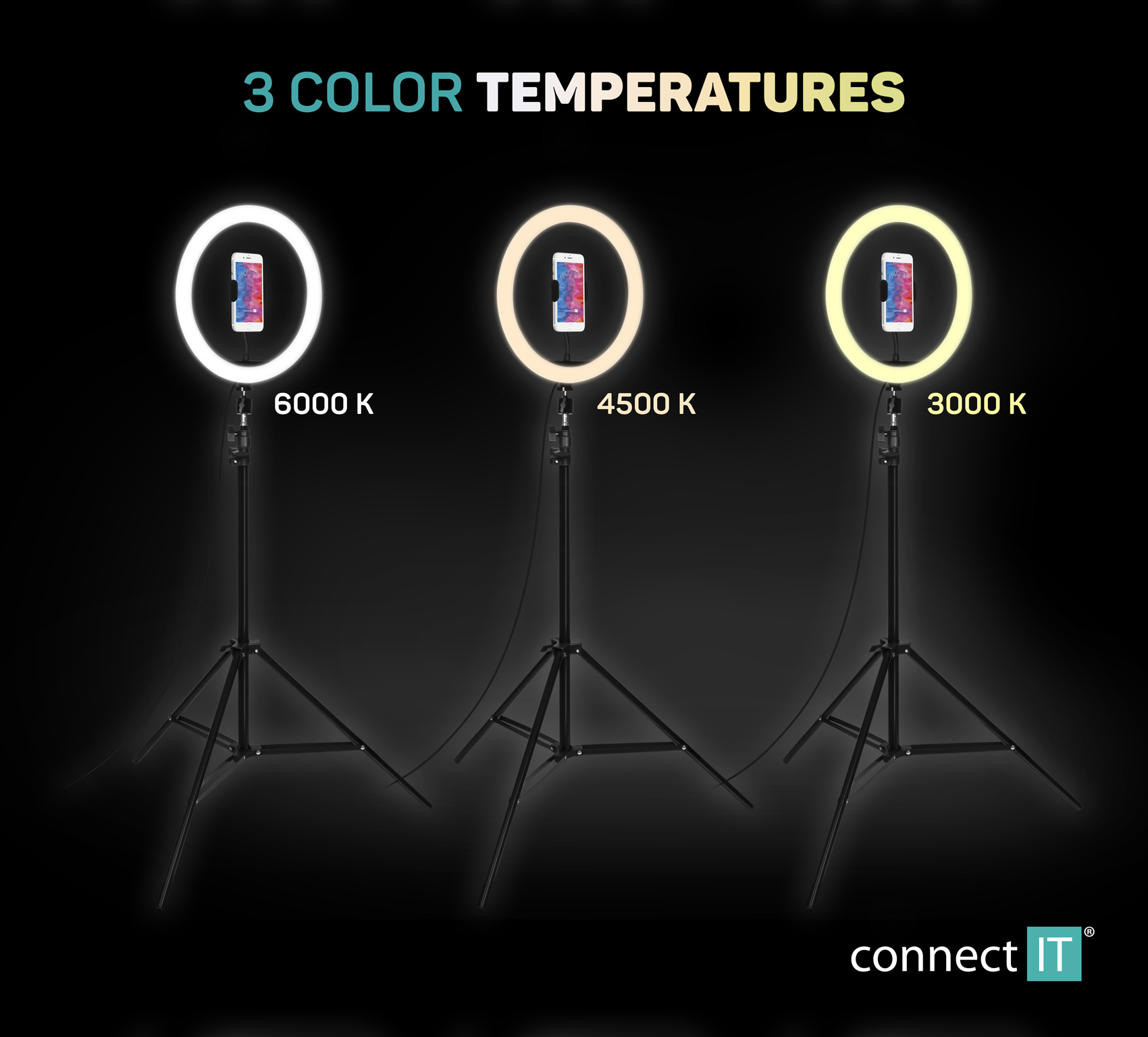 CONNECT IT Selfie12Ring kruhové 12" LED světlo + stativ 2,1 m