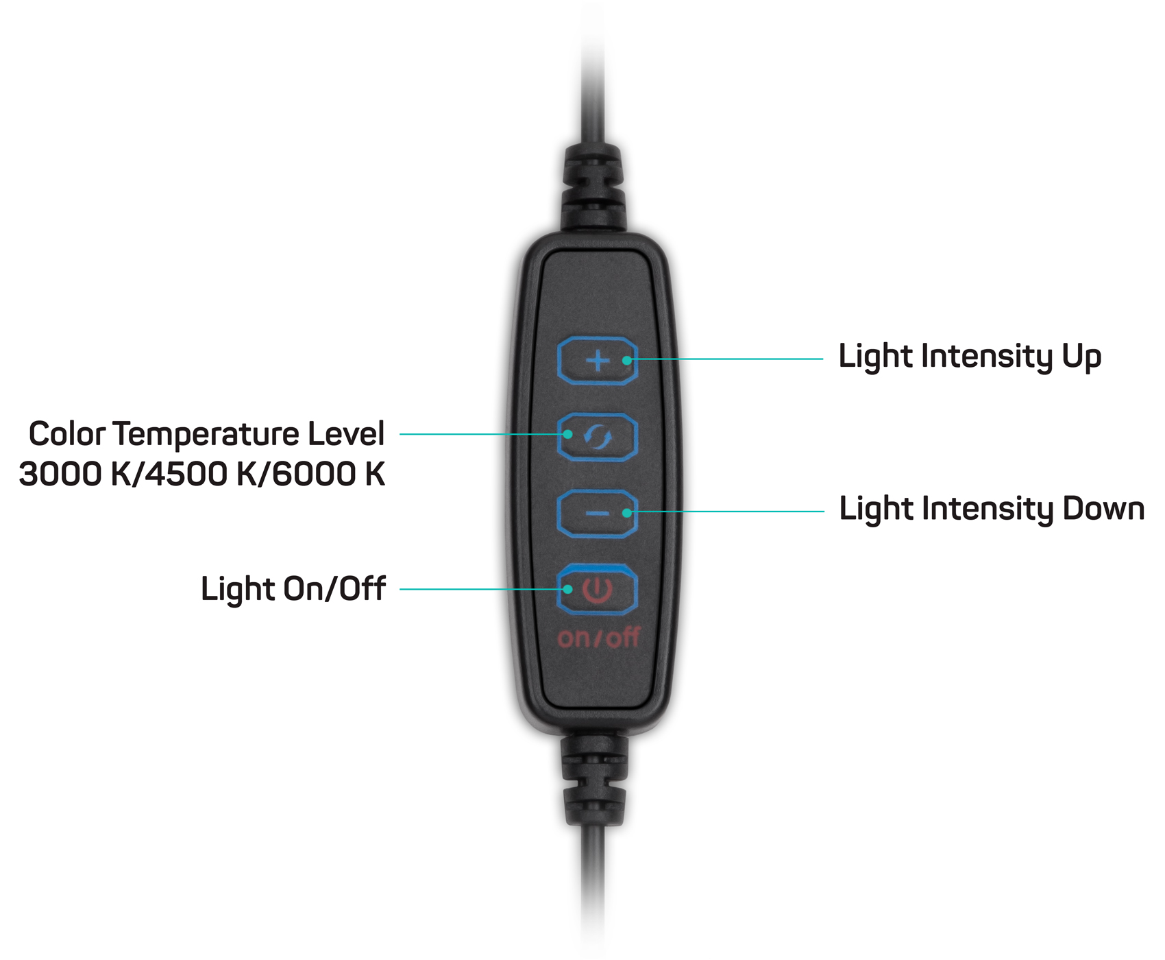 Absolutní svobodu nastavení požadovaného úhlu garantuje kulová hlava. Barevnou teplotu světla je možno nastavit od studené až po teplou ve třech úrovních. Držák mobilního telefonu umístěný na flexibilním husím krku umožňuje pohodlné nastavení do libovolného snímacího úhlu fotografií a videí. Ve výbavě nechybí dálkový ovladač pro vypnutí/zapnutí světla, nastavení jeho intenzity nebo barevné teploty.