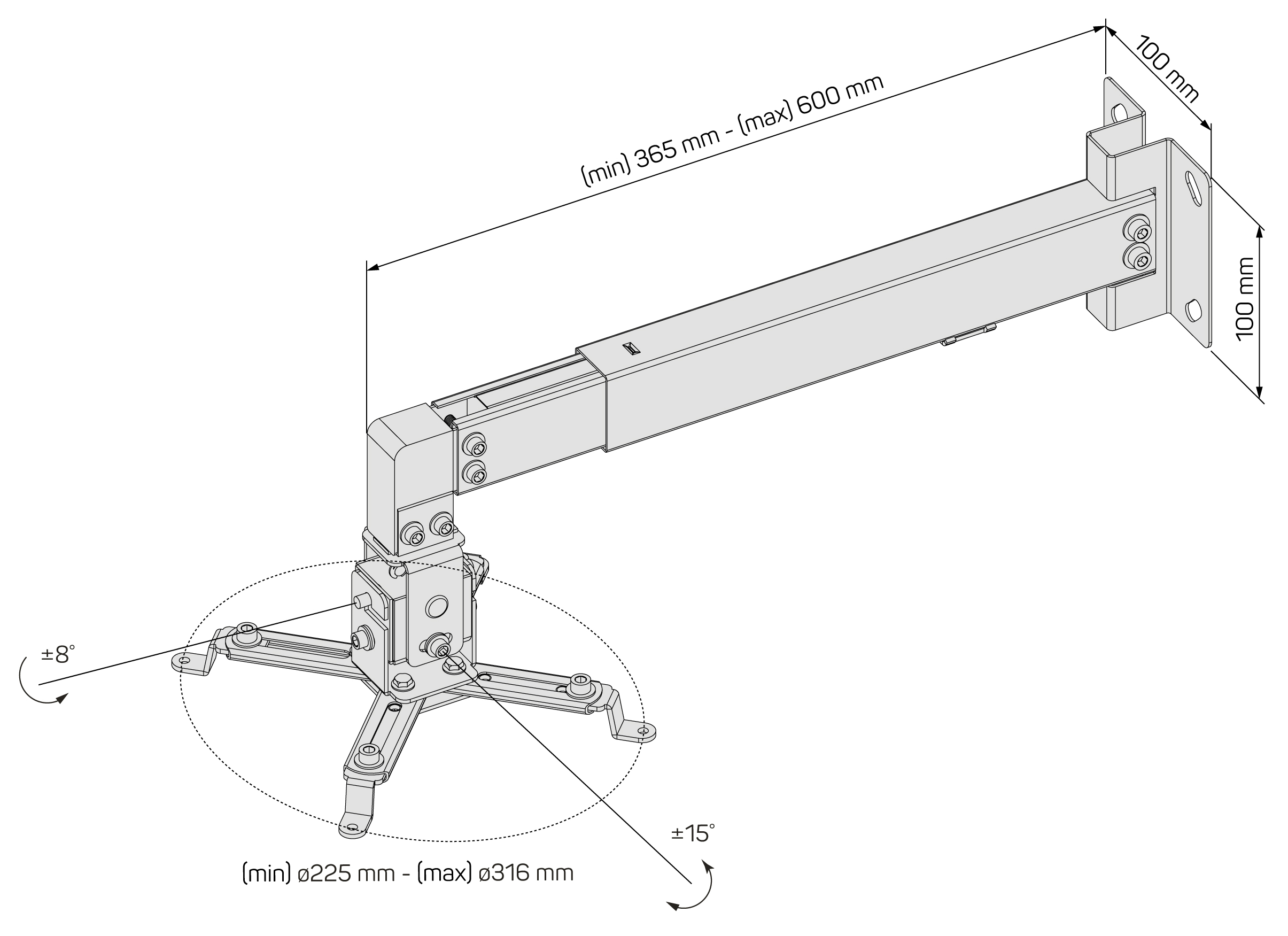Kompatibilní s projektory o vzdáleností roztečí montážních otvorů od 225 mm do 316 mm