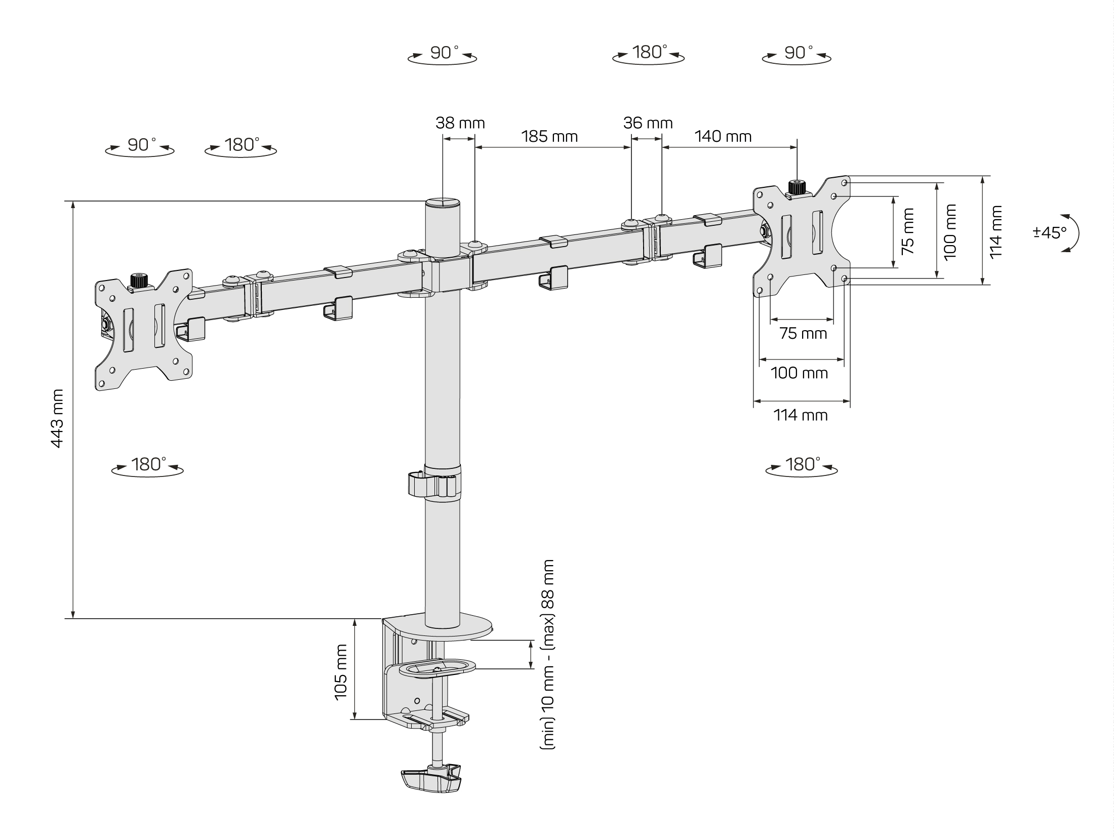 Maximální variabilita díky 5 pohyblivým kloubům pro každý monitor (celkem 10 pohyblivých kloubů)
