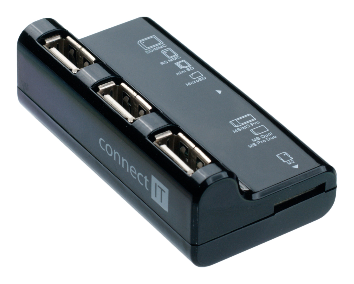 CONNECT IT USB COMBO hub 3 porty + čtečka karet BOOT černé