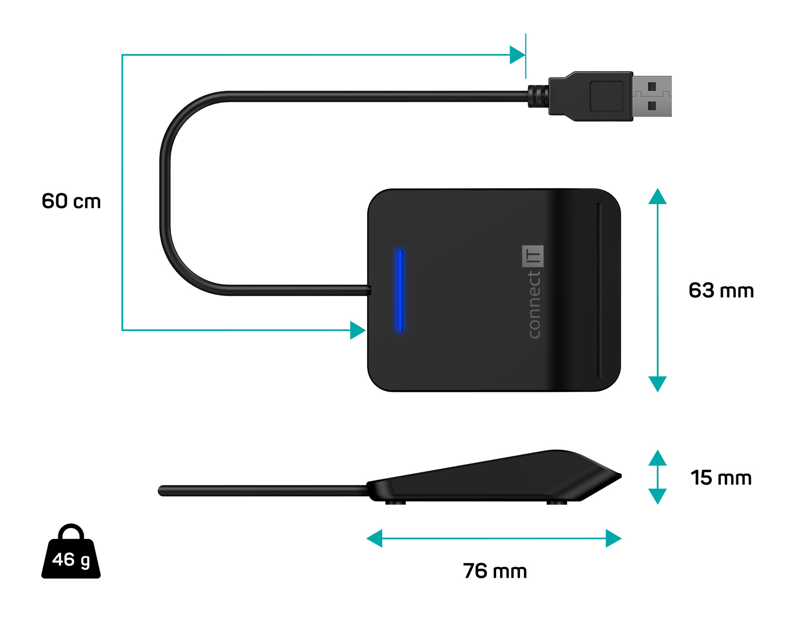 CONNECT IT USB čtečka eObčanek a čipových karet, ČERNÁ
