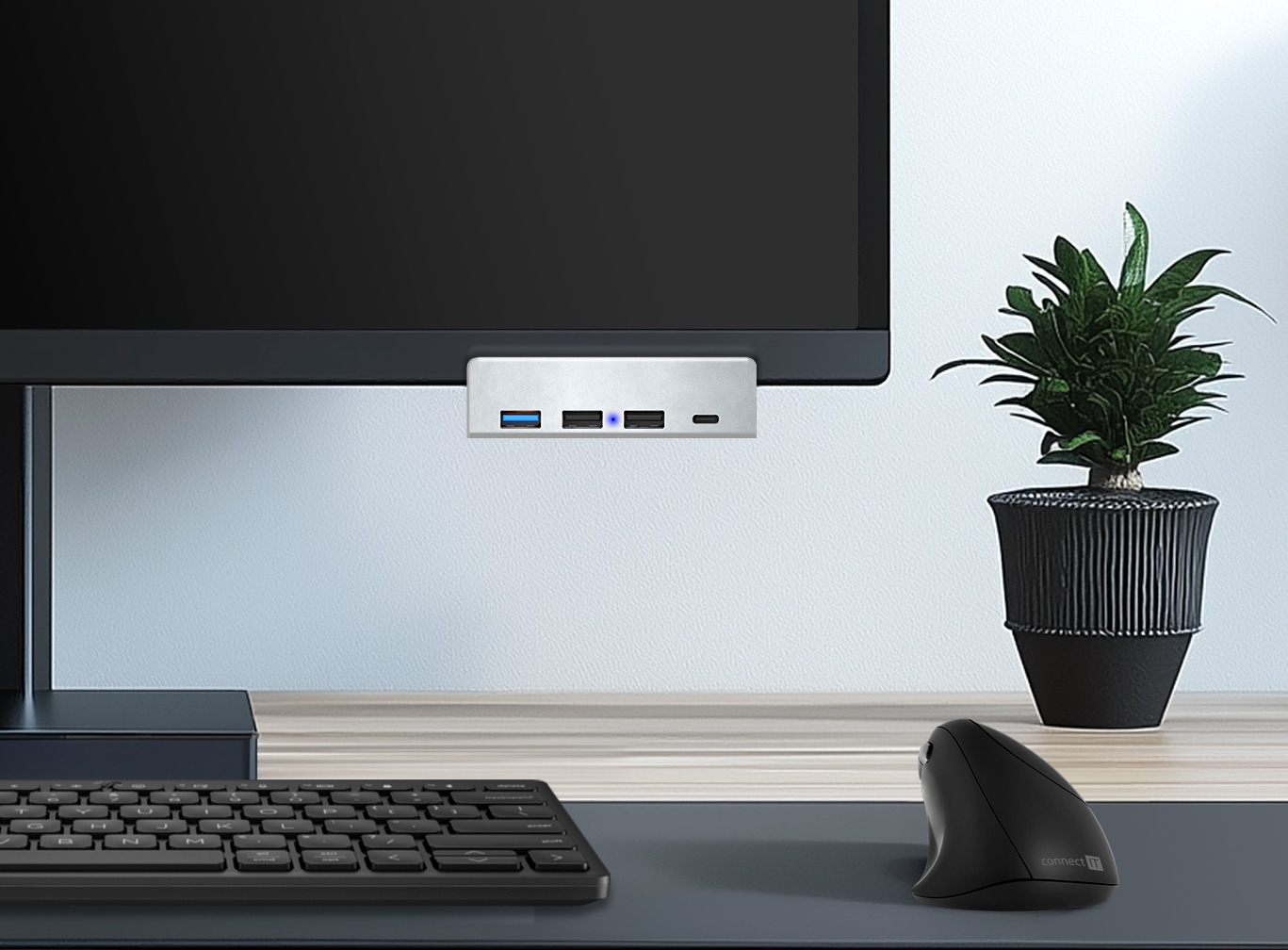 CONNECT IT USB DeskHub 4v1 na desku stolu, STŘÍBRNÝ