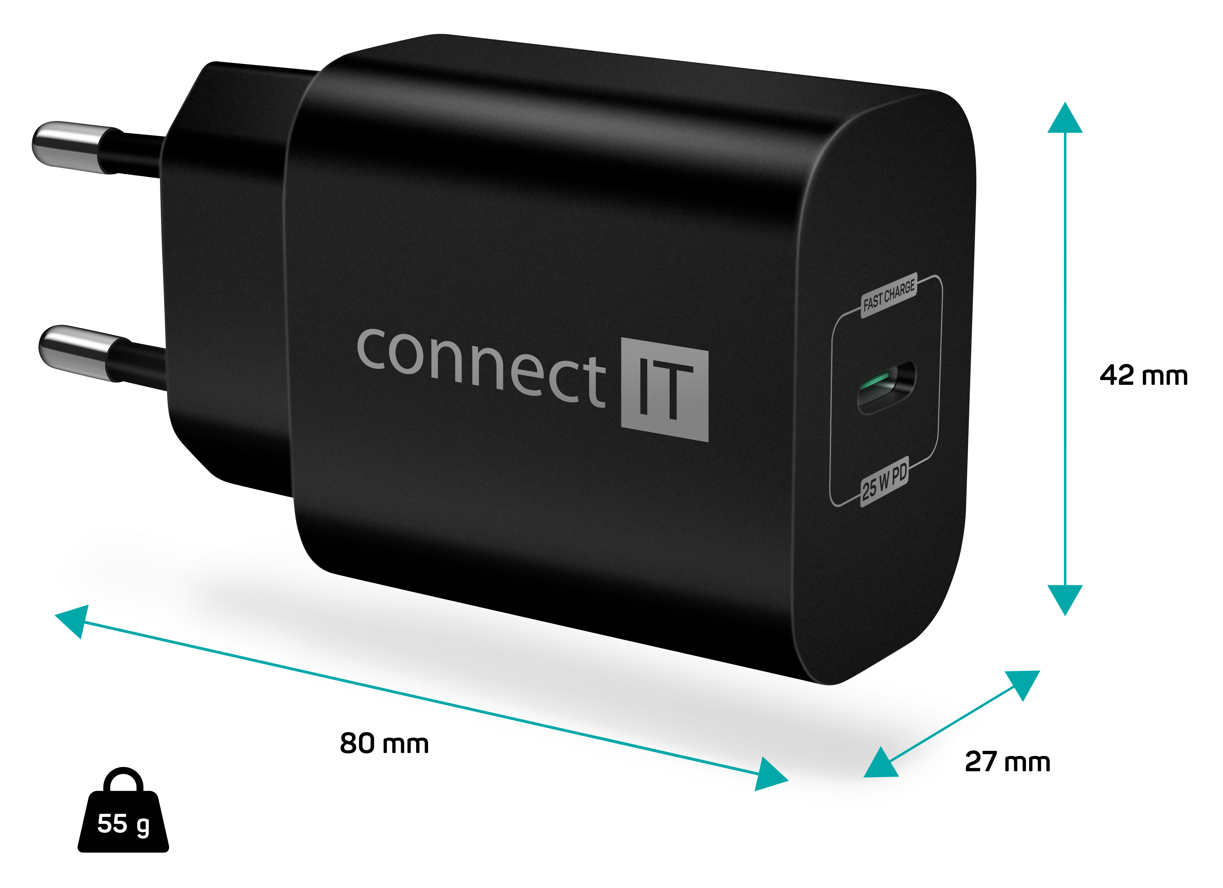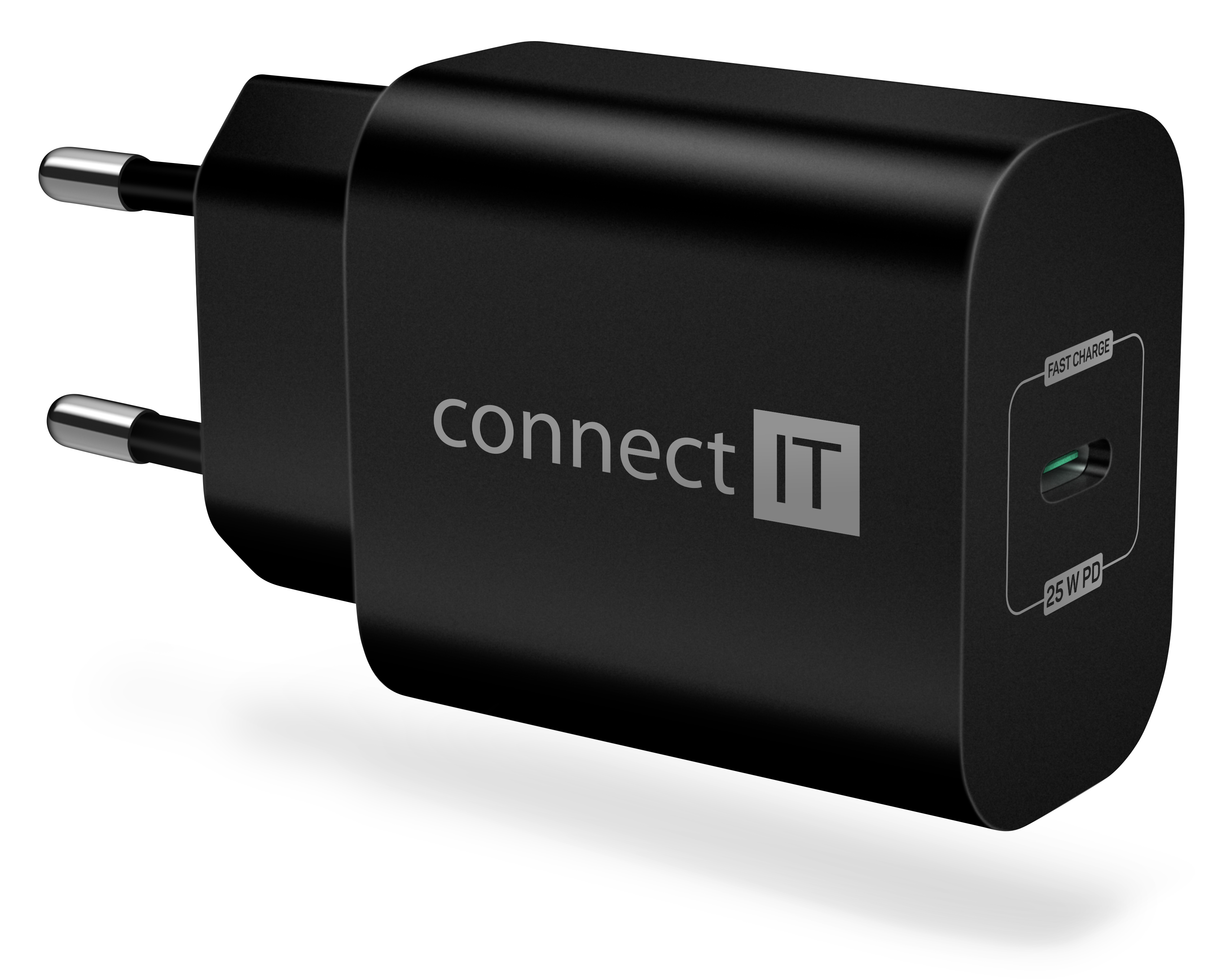 CONNECT IT Voyager2 nabíjecí adaptér 1×USB-C, 25W PD, ČERNÝ