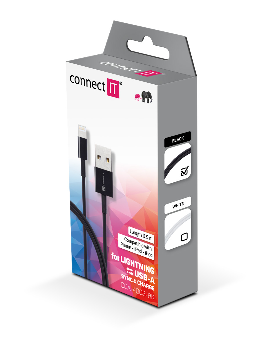 CONNECT IT Wirez Apple Lightning -> USB-A, černý, 0,5 m