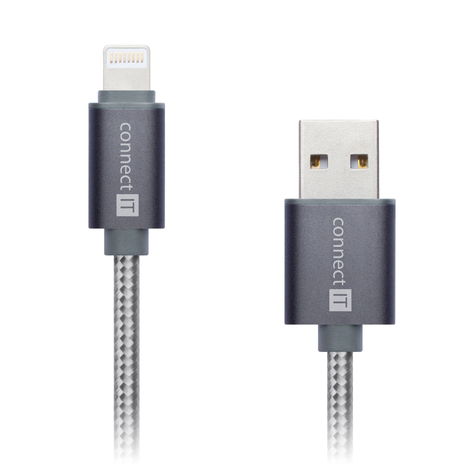CONNECT IT Wirez Premium Metallic Lightning - USB, silver gray, 1m