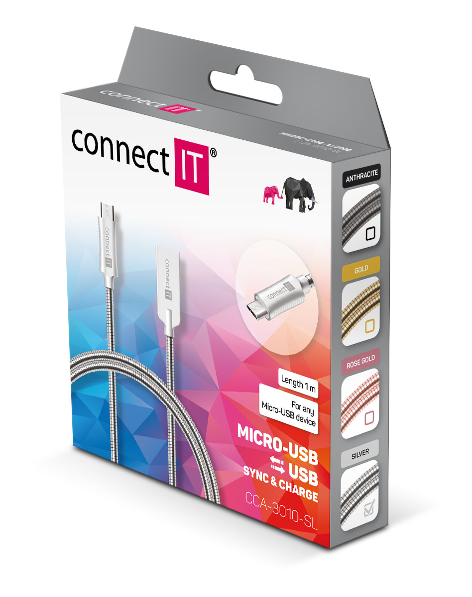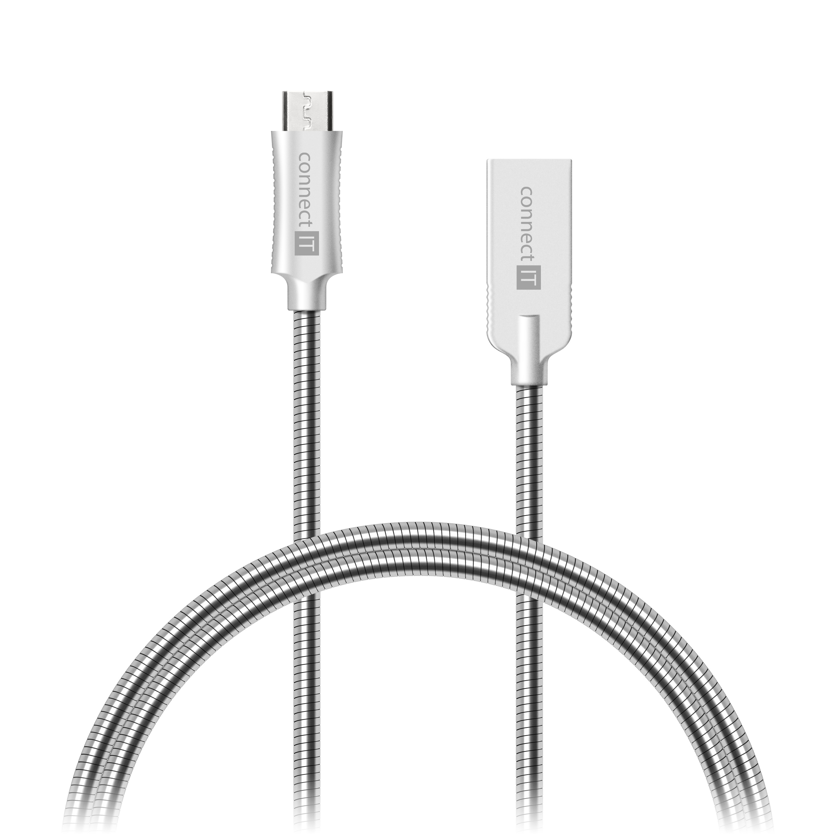 CONNECT IT Wirez Steel Knight Micro USB - USB, metallic silver, 1 m