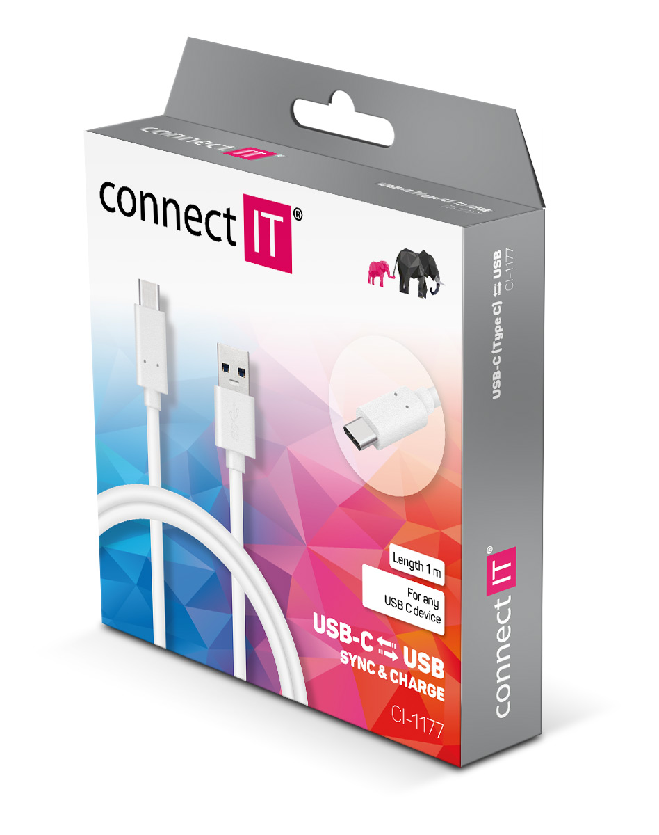 CONNECT IT Wirez USB-C (Type C) -> USB-A, USB 3.1 Gen 1, bílý, 1 m