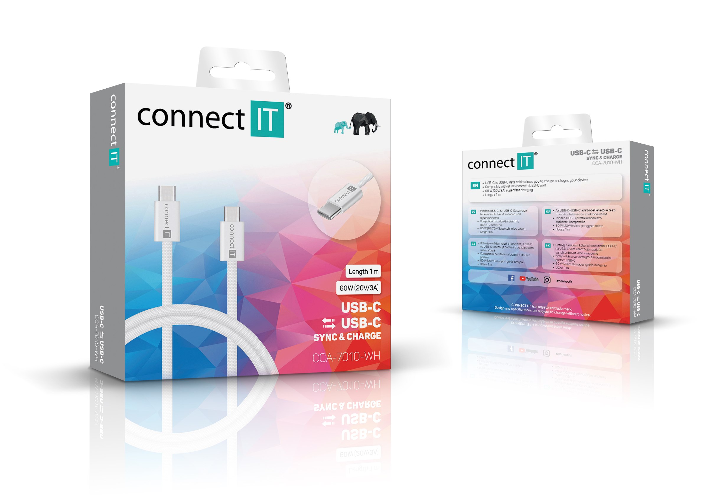 CONNECT IT Wirez USB-C -> USB-C, 60 W, 1 m, BÍLÁ