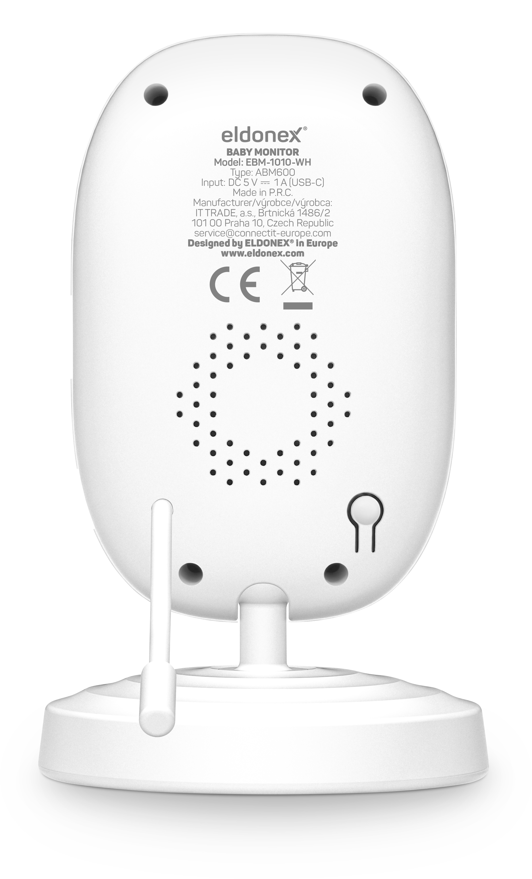 Eldonex BabyCheck je digitální video chůvička s barevným 3.5" displejem, automatickým nočním viděním a pokojovým teploměrem. Chůvička disponuje funkcí TalkBack pro oboustrannou komunikaci. Další užitečné funkce jsou například nastavení připomínky pro krmení, přehrávání ukolébavky nebo funkce VOX pro automatické vypínání displeje. Díky zabudované baterii v displeji s kapacitou 2000 mAh nejste limitováni žádnou zásuvkou nebo zdrojem energie, kameru lze napájet díky přiloženému napájecímu adaptéru s kabelem USB-C na USB-A.