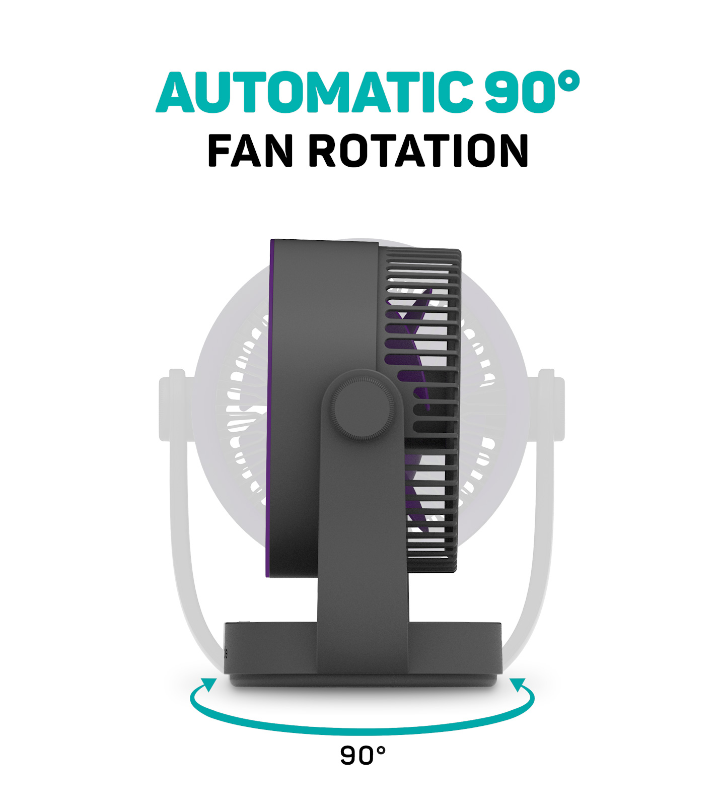 Stolní letní ventilátor s lopatkami o průměru 125 mm nabízí maximální komfort ochlazení v horkých letních dnech. Disponuje plně automatickým otáčením s motorickým pohonem v rozsahu 90° a umožňuje náklon 90°.