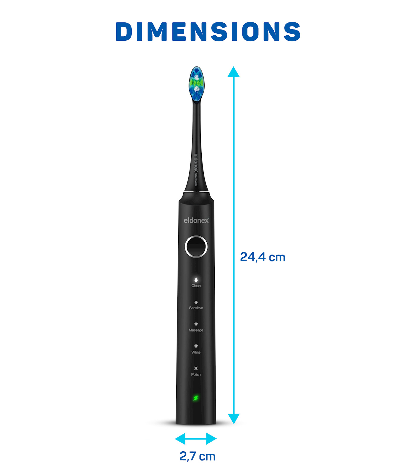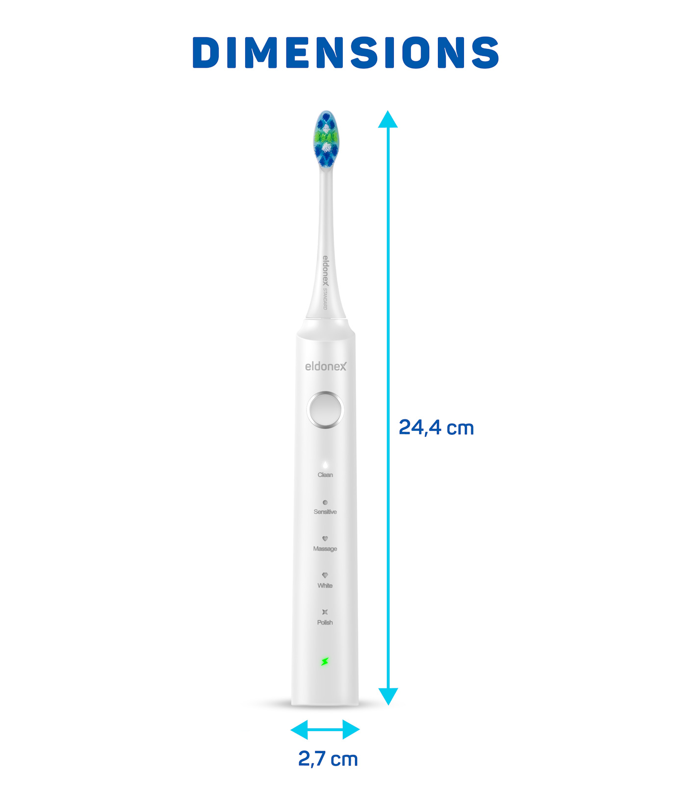 Sonický kartáček disponuje 5 režimy čistění, které zajistí kompletní péči o vaše zuby a uspokojí každého individuální potřeby. Díky vestavěné Li-Ion baterii s kapacitou 500 mAh, Vám kartáček vydrží až na 40 použití bez potřeby nabití. Jednoduché ovládání jedním tlačítkem zvládne každý člen rodiny. K nabíjení slouží dodávané podstavce, do kterých jednoduše kartáček postavíte. Praktické cestovní pouzdra, Vám umožní si vzít kartáčky všude s sebou na cesty. V balení naleznete dva sonický kartáčky, dva dobíjecí podstavce, čtyři standartní hlavice a čtyři jemné hlavice, vše ve dvou barvách bílé a černé.