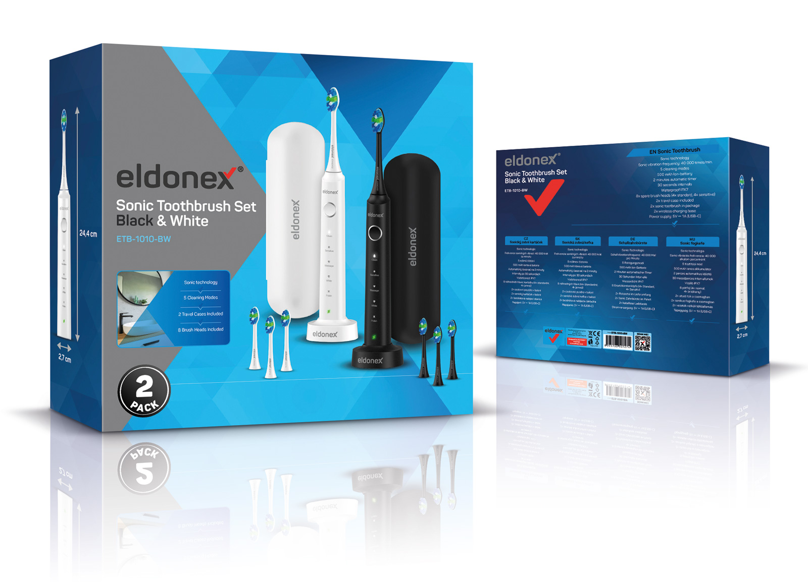ELDONEX SonicPro DuoPack sonické zubní kartáčky ČERNÝ&BÍLÝ