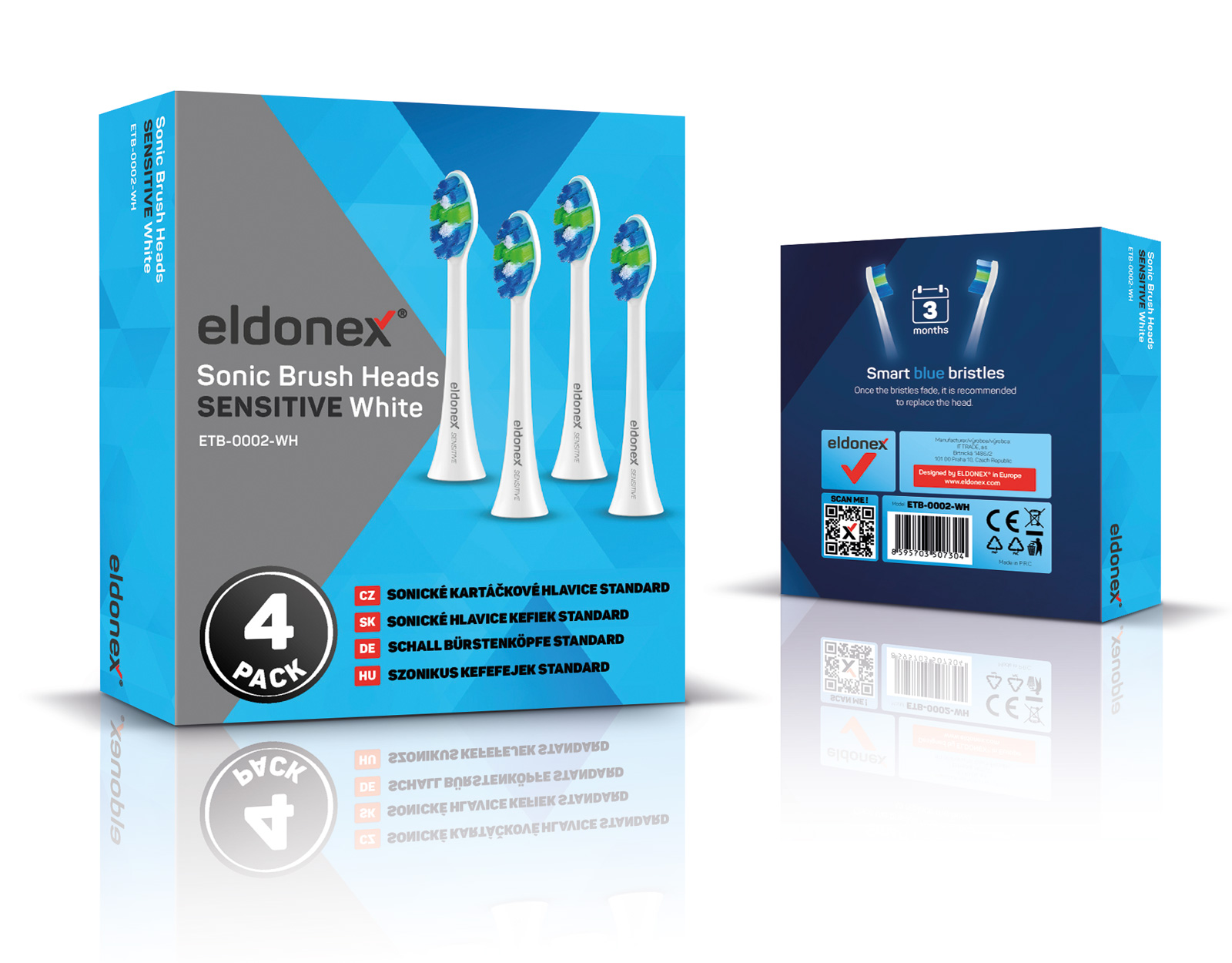 ELDONEX SonicPro SENSITIVE náhradní hlavy kartáčku BÍLÉ