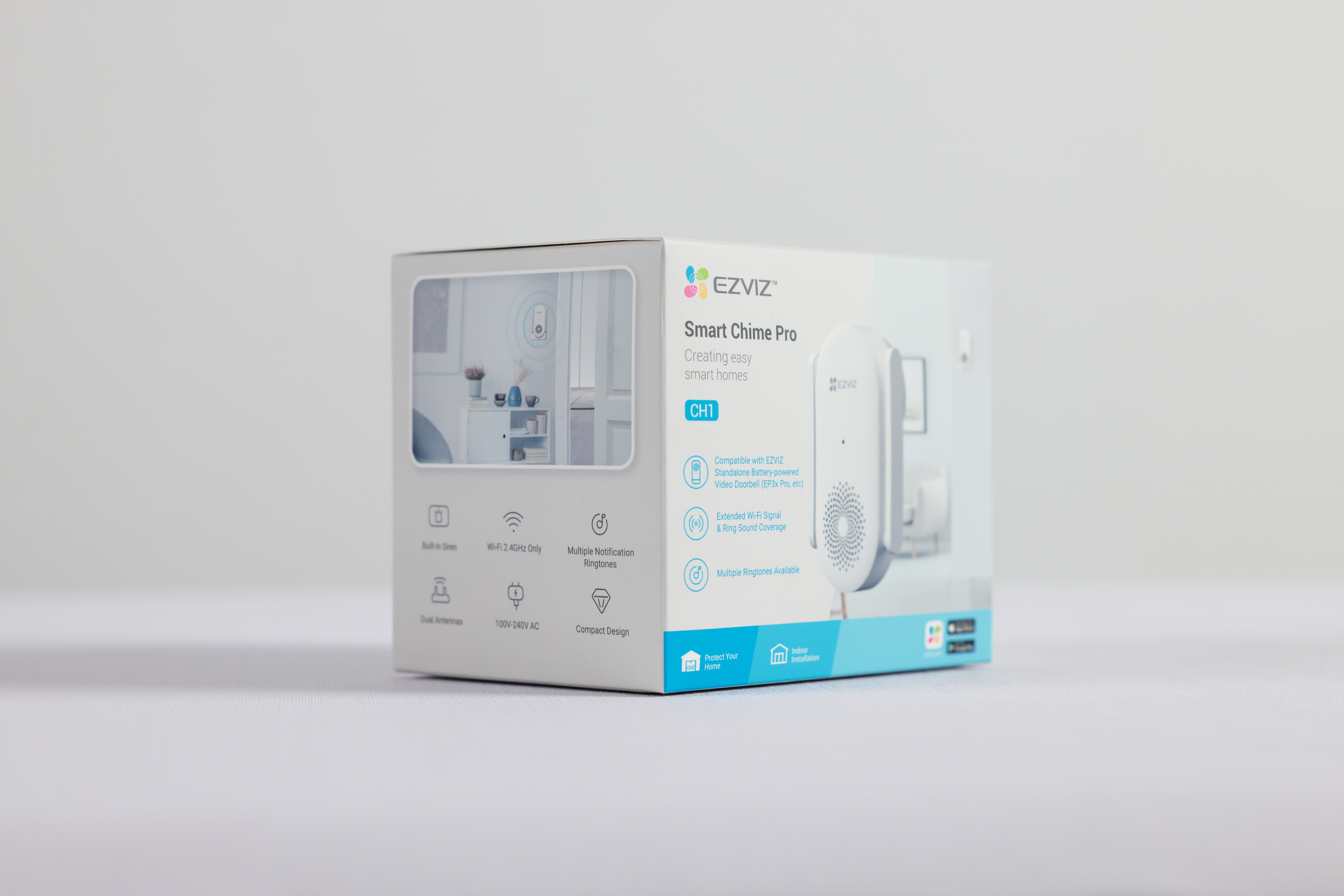 CH1 je chytrý Wi-Fi gong navržený pro bateriové videovrátné EZVIZ, který zajišťuje spolehlivé zvukové upozornění na příchozí návštěvu a zároveň posiluje Wi-Fi signál v domácnosti. Díky duálním anténám pomáhá stabilizovat připojení zvonku i ve větších domech s tlustými zdmi. Nabízí až 20 vyzváněcích melodií, nastavitelnou hlasitost a jednoduchou instalaci přímo do zásuvky.