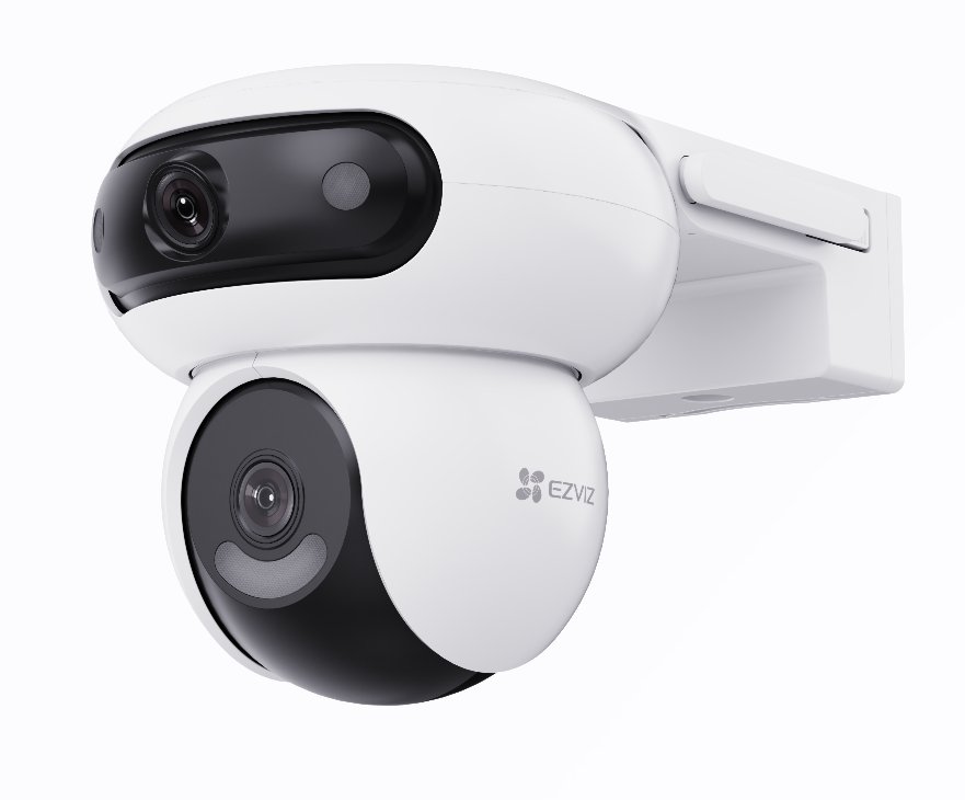 Duální venkovní Wi-Fi kamera s dvěma otočnými objektivy poskytuje rozsáhlé pokrytí prostoru a možnost souběžného sledování dvou oblastí. Horní širokoúhlý objektiv zachycuje velké plochy, zatímco spodní modul se otáčí a sleduje detailně vybrané objekty. Kamera podporuje AI detekci osob a vozidel, barevné noční vidění až 40 m, automatické sledování pohybu a aktivní obranu pomocí sirény a světel. Umožňuje ukládání záznamu na microSD kartu i EZVIZ CloudPlay a je kompatibilní s hlasovými asistenty Google Assistant a Amazon Alexa.