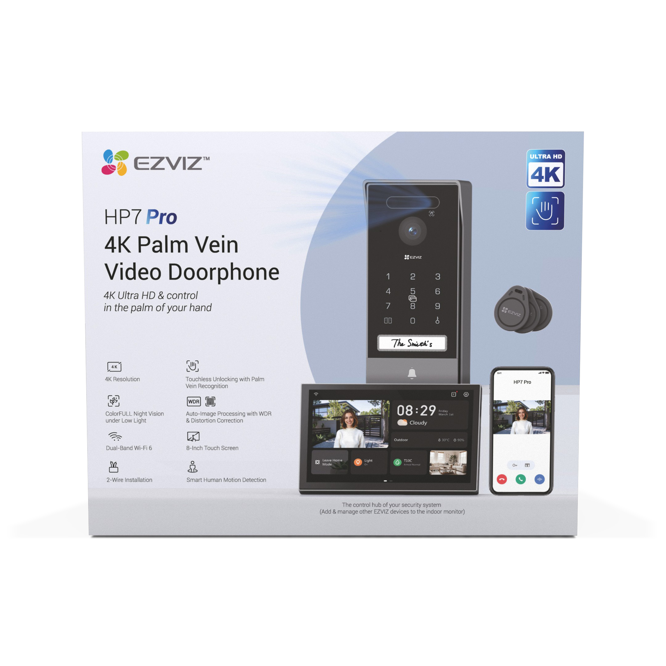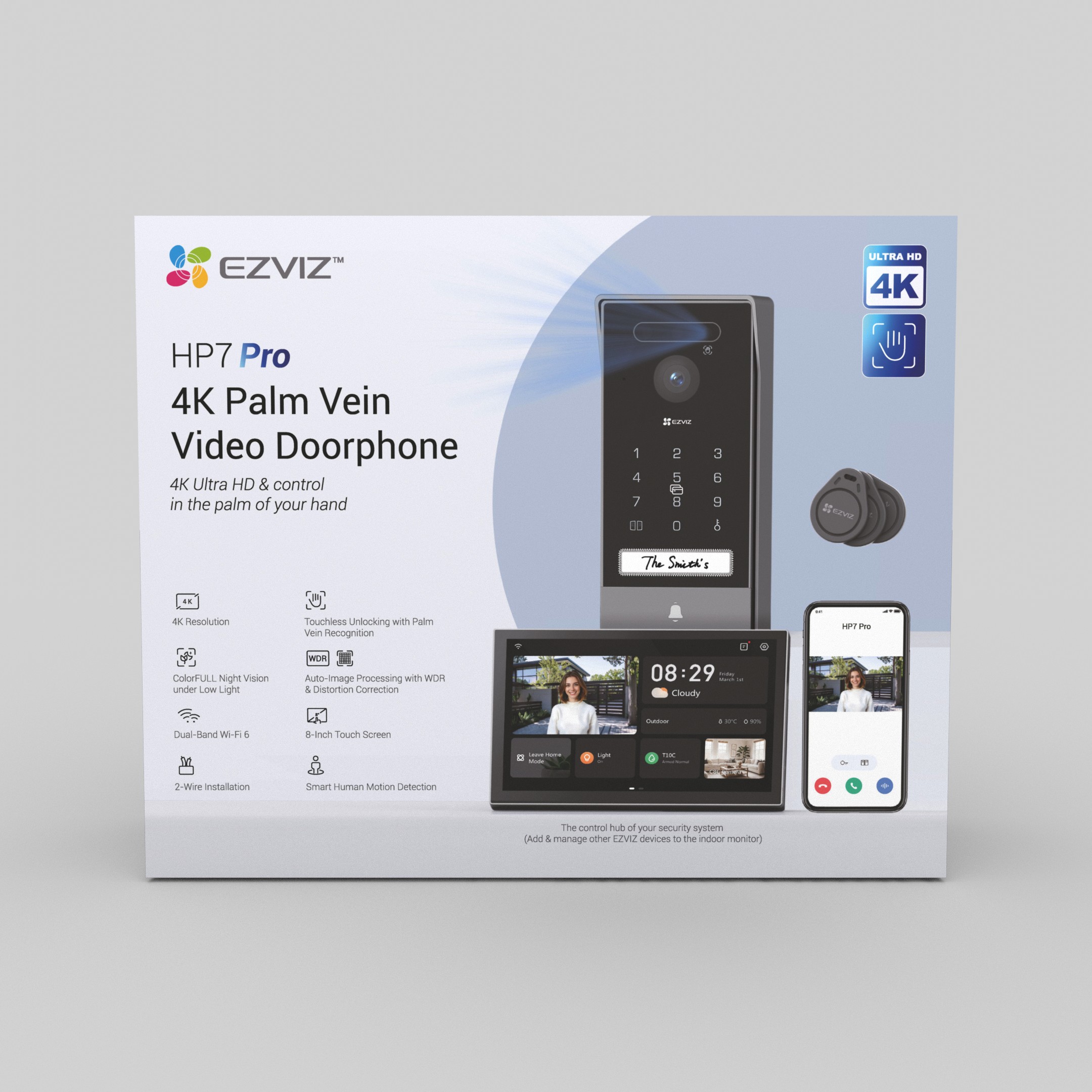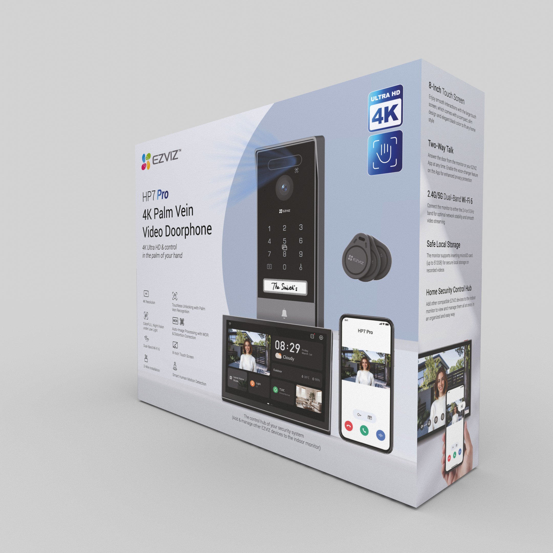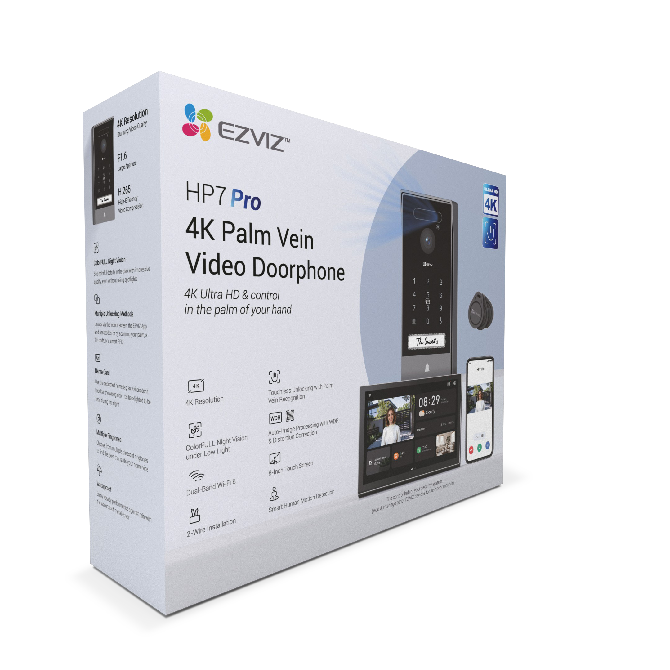 HP7 Pro je špičkový vstupní systém s 4K rozlišením a pokročilou biometrií pro odemykání - zahrnuje rozpoznání žil v dlani, rozpoznání obličeje a RFID. S 8" dotykovým monitorem, AI detekcí lidské přítomnosti, nočním viděním ColorFULL a odolným provedením je ideální pro vily a moderní domácnosti. Umožňuje vzdálené ovládání přes aplikaci EZVIZ, podporuje microSD i cloudové úložiště a poskytuje bezpečný a rychlý přístup pro oprávněné uživatele.