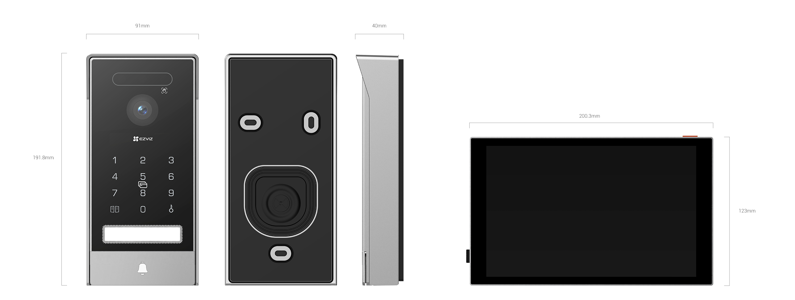 - Outdoor panel: 191.8 × 91 × 40 mm