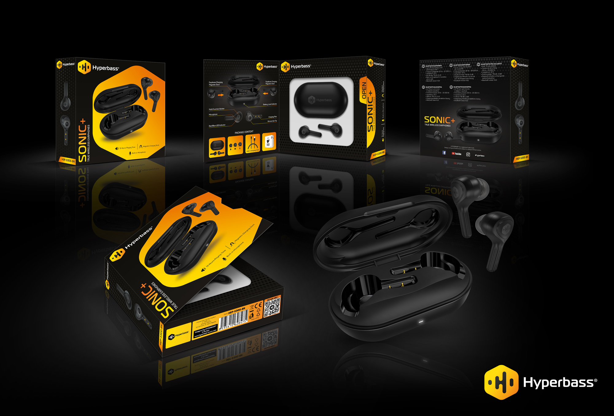 HYPERBASS True Wireless Sonic+ sluchátka do uší s mikrofonem, ČERNÁ