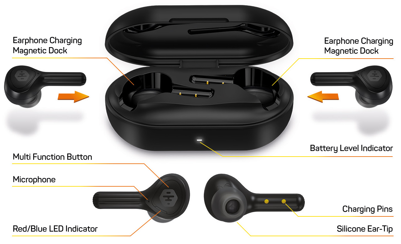 100% nulový mikrofonní efekt díky bezkabelové konstrukci (eliminace nežádoucího přenosu ruchů přes kabel do těla sluchátek a následně do ucha)