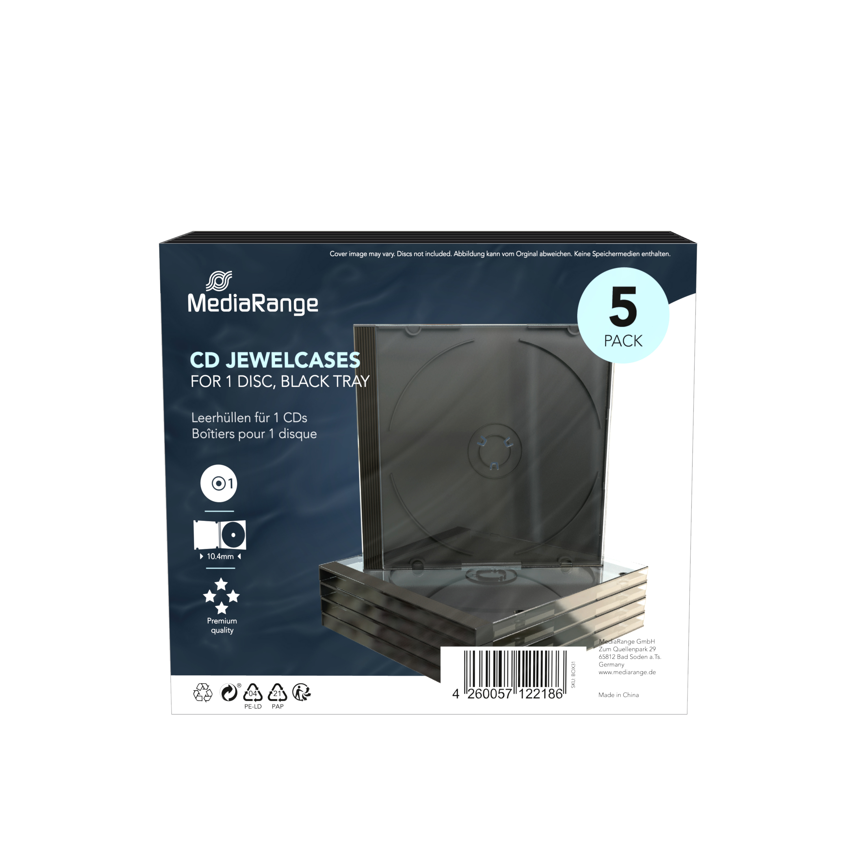 MEDIARANGE 1 CD 10.4mm černý - 5ks/bal