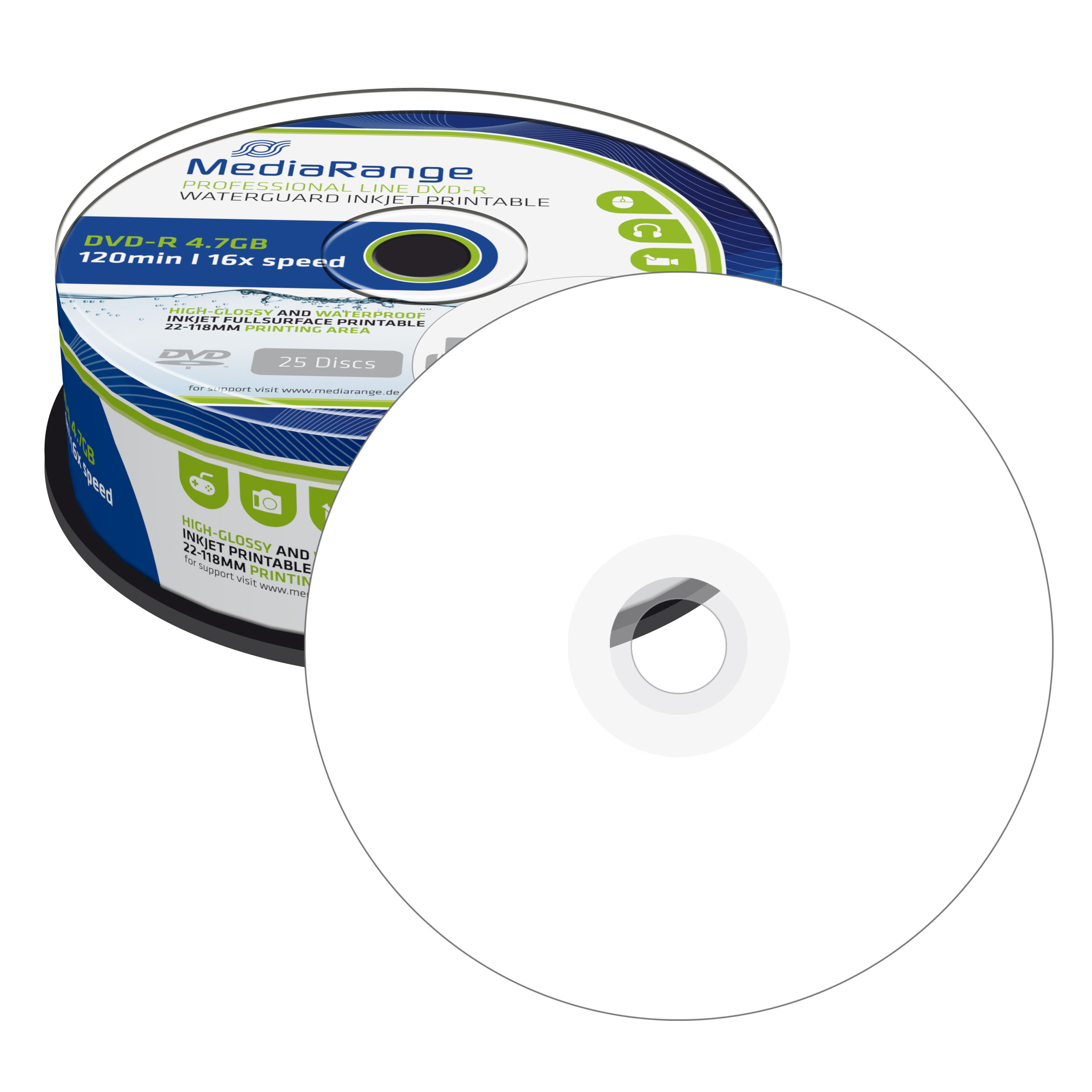 MEDIARANGE DVD-R 4,7GB 16x Waterguard Photo spindl 25pck/bal Inkjet Printable