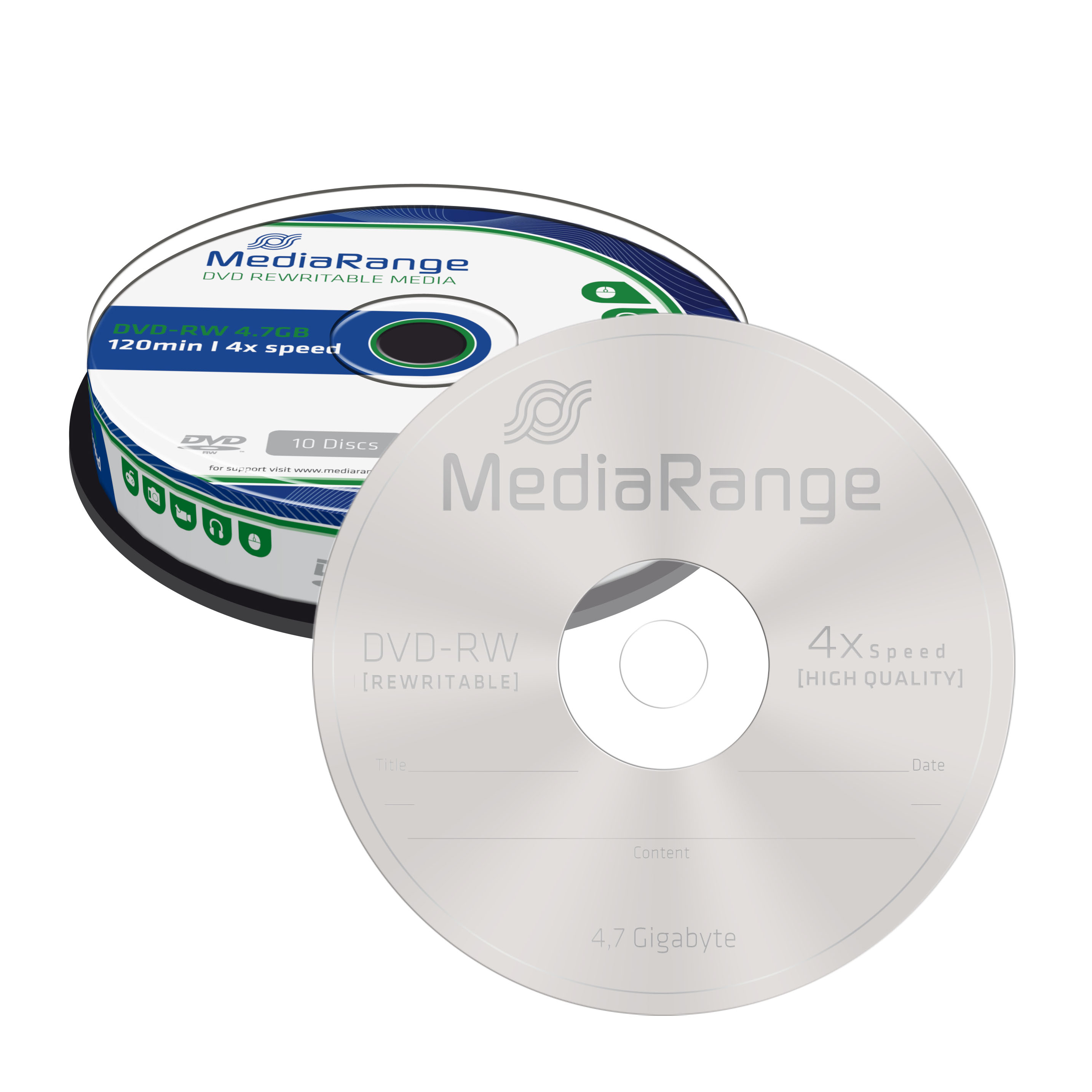 Kvalitní a cenově dostupná média DVD-RW značky MediaRange poskytují spolehlivý zápis a přepis dat s kapacitou až 4,7 GB při maximální rychlosti zápisu až 4x. Média jsou balena po 10 kusech ve spindlu.