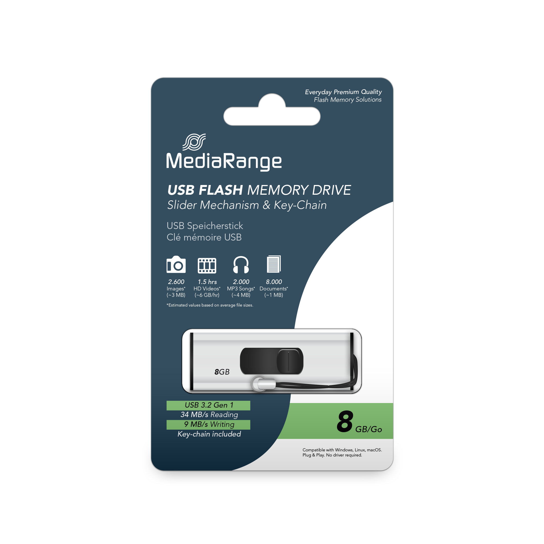MEDIARANGE Slider 8GB USB 3.2 Gen 1