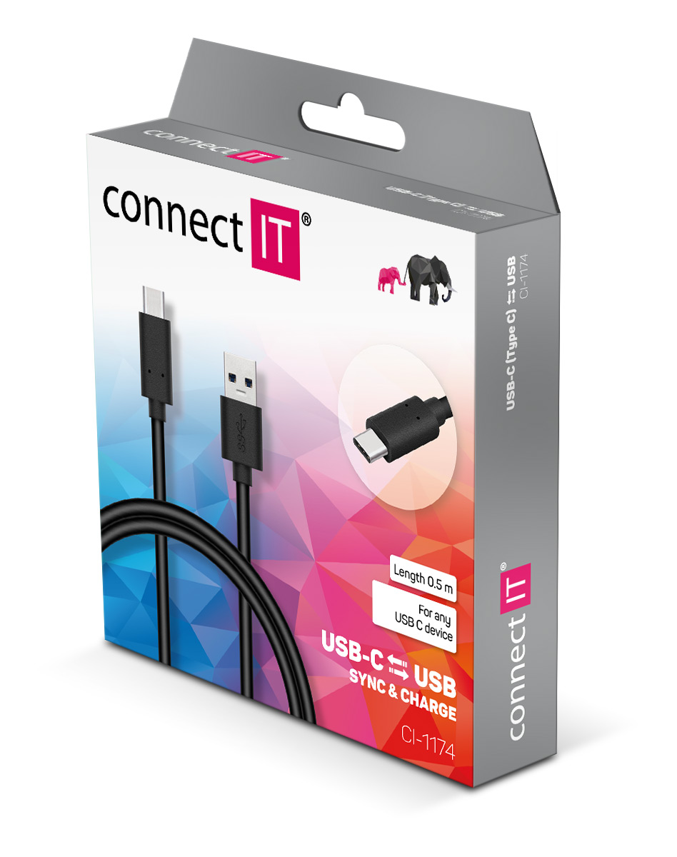 CONNECT IT Wirez USB-C (Type C) -> USB-A, USB 3.1 Gen 1, černý, 0,5 m
