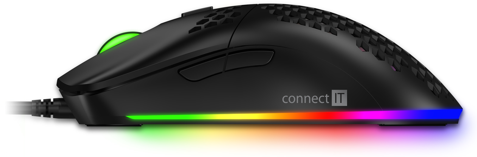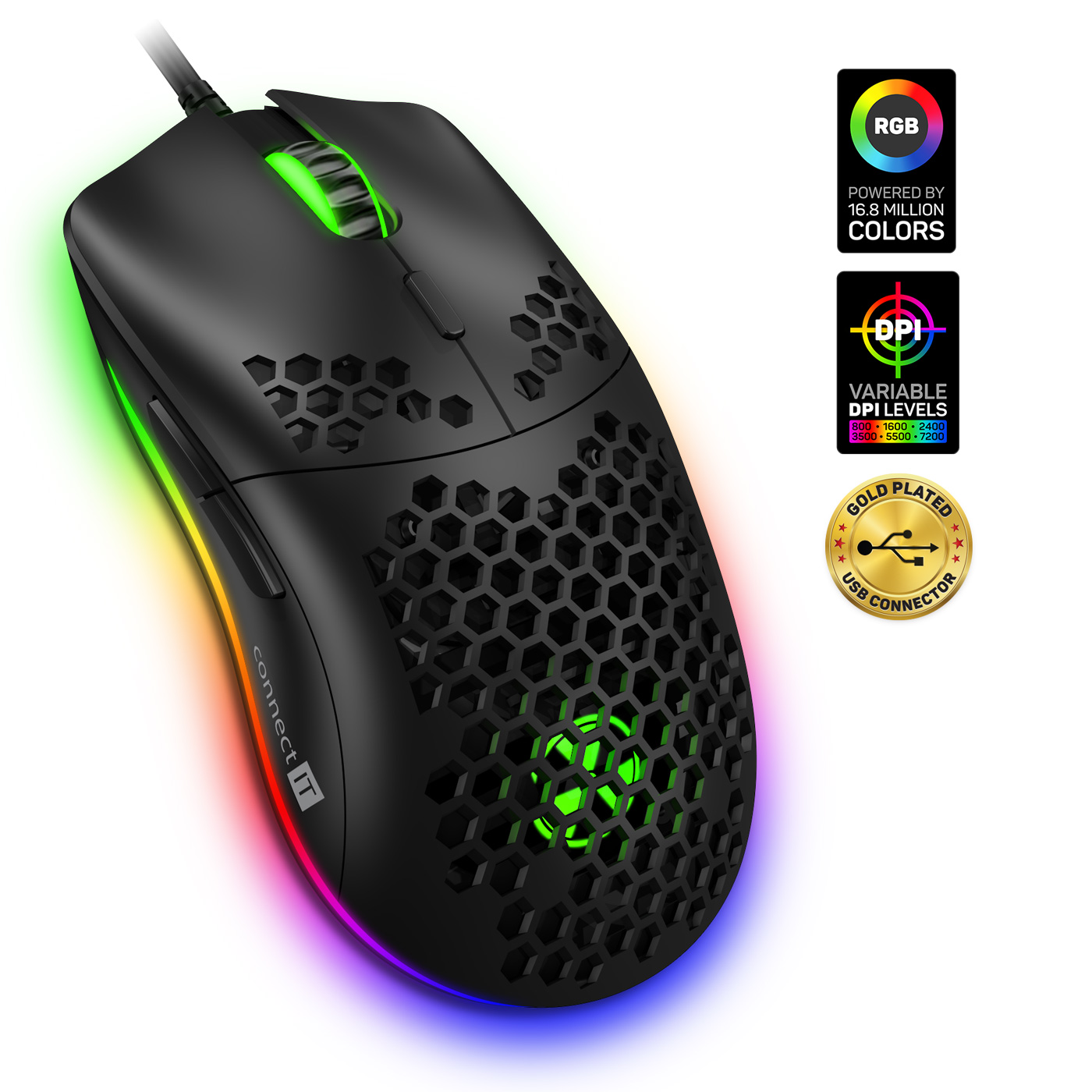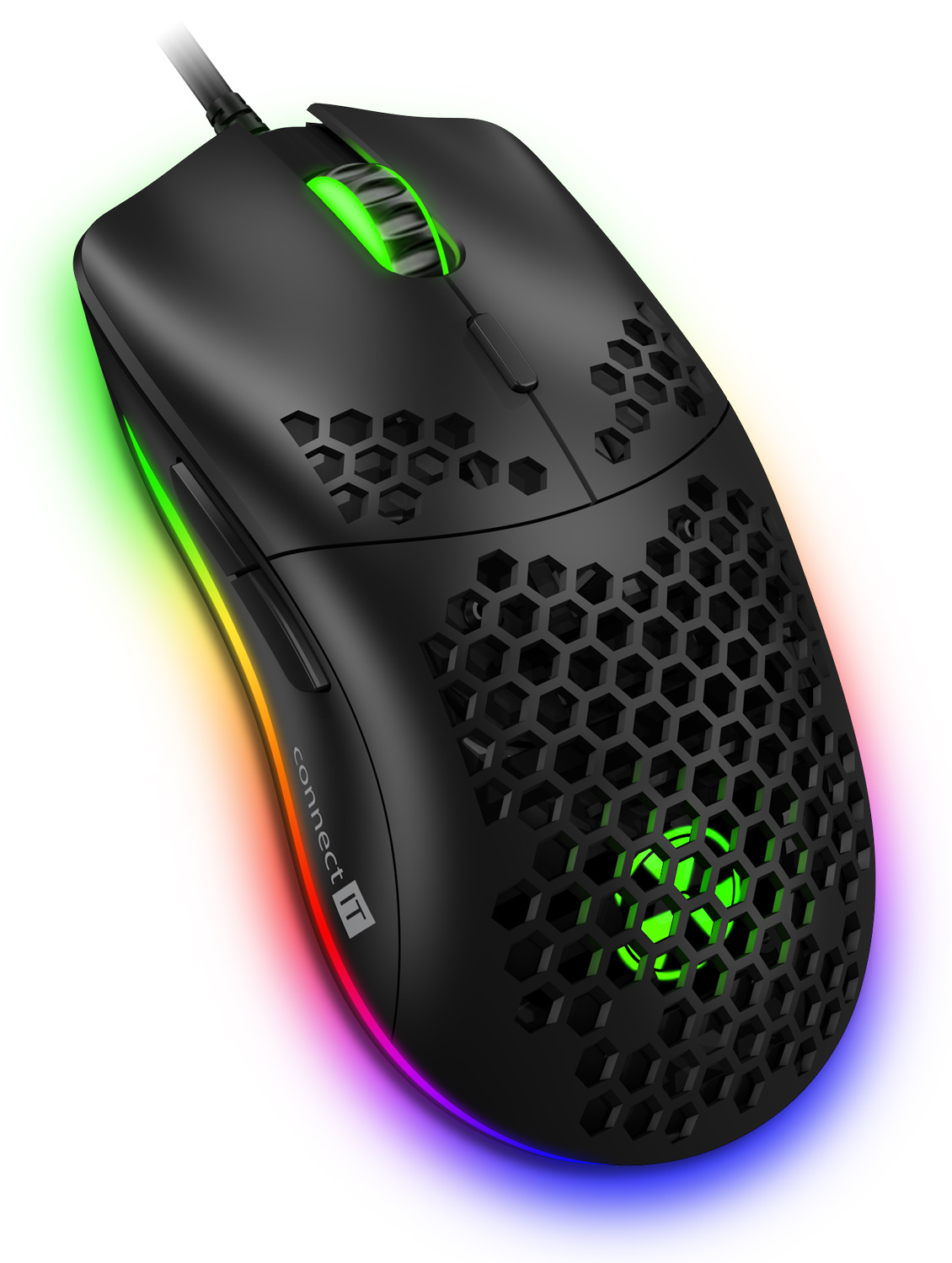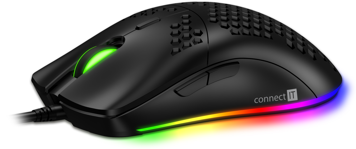 Kromě běžných funkcí je tato myš unikátní svojí odlehčenou konstrukcí. Díky perforaci těla myši a tlačítek speciálním hexagonovým tvarem, kterým došlo ke snížení váhy myši o 50%. Tento typ perforace zajistí maximální grip a stabilitu při dlouhodobém hraní. K této myši je dodáván software ke stažení zcela zdarma na stránkách www.connectit-europe.com. Samozřejmostí je u této série prémiový oplet přívodního kabelu a pozlacený USB konektor.