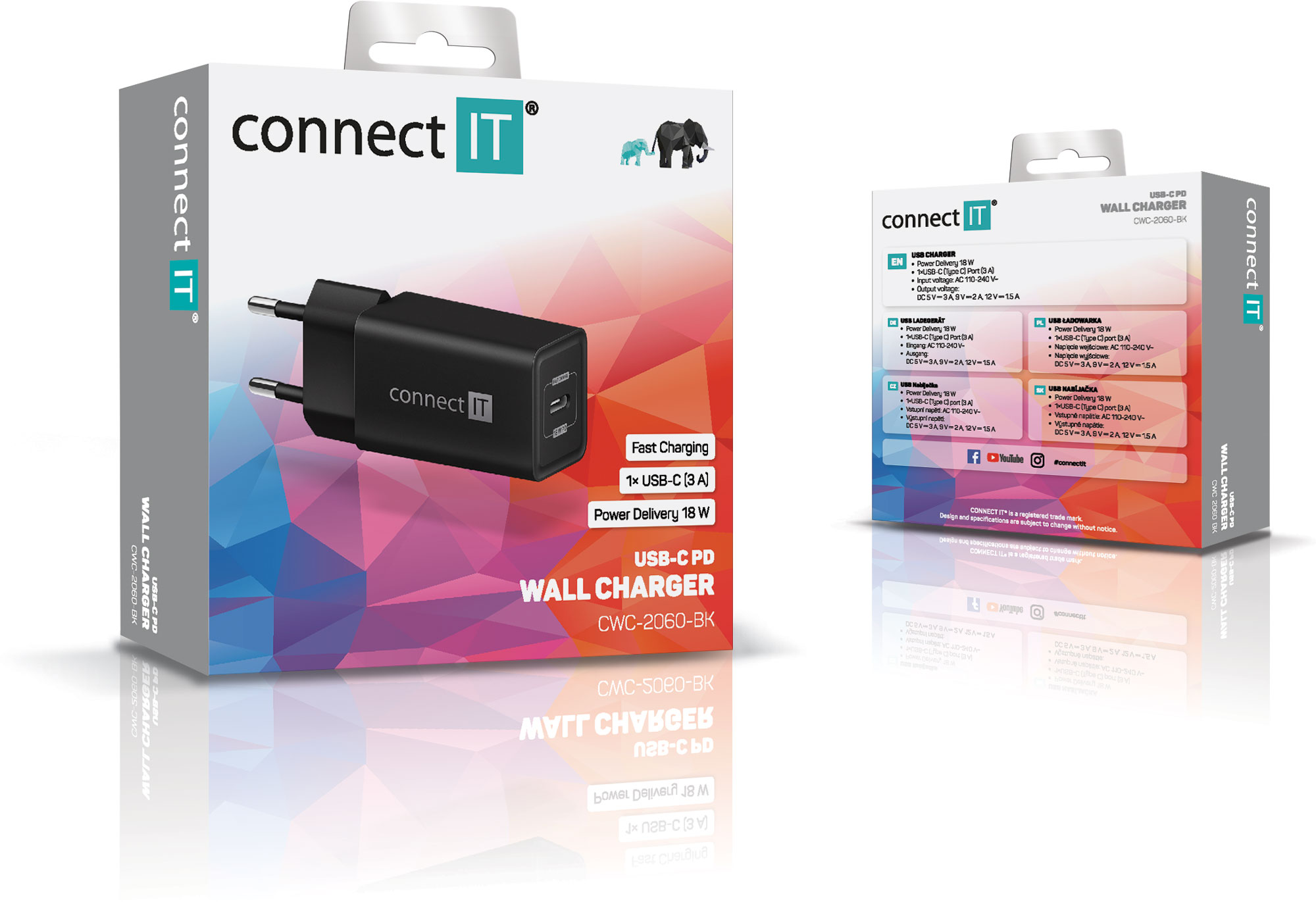 Cestovní USB nabíječka CONNECT IT "Fast PD Charge" určená pro napájení i nabíjení mobilních telefonů, tabletů, power bank, akčních kamer, elektronických čteček knih, MP3 a MP4 přehrávačů, herních konzolí a mnoha dalších přenosných zařízení doma, v kanceláři i na cestách. Technologie Power Delivery (PD) umožňuje rychlonabíjení o výkonu 18 W.