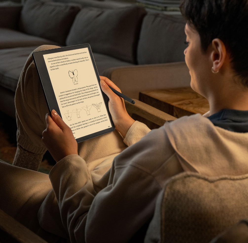 Čtěte a pište pohodlně ve dne i v noci – ať už se ponoříte do populárně naučné knihy nebo recenzujete dokument, Kindle Scribe má velký displej s vysokým rozlišením, nastavitelné teplé světlo, automatické nastavení předního světla a větší velikosti písma. personalizované zkušenosti.