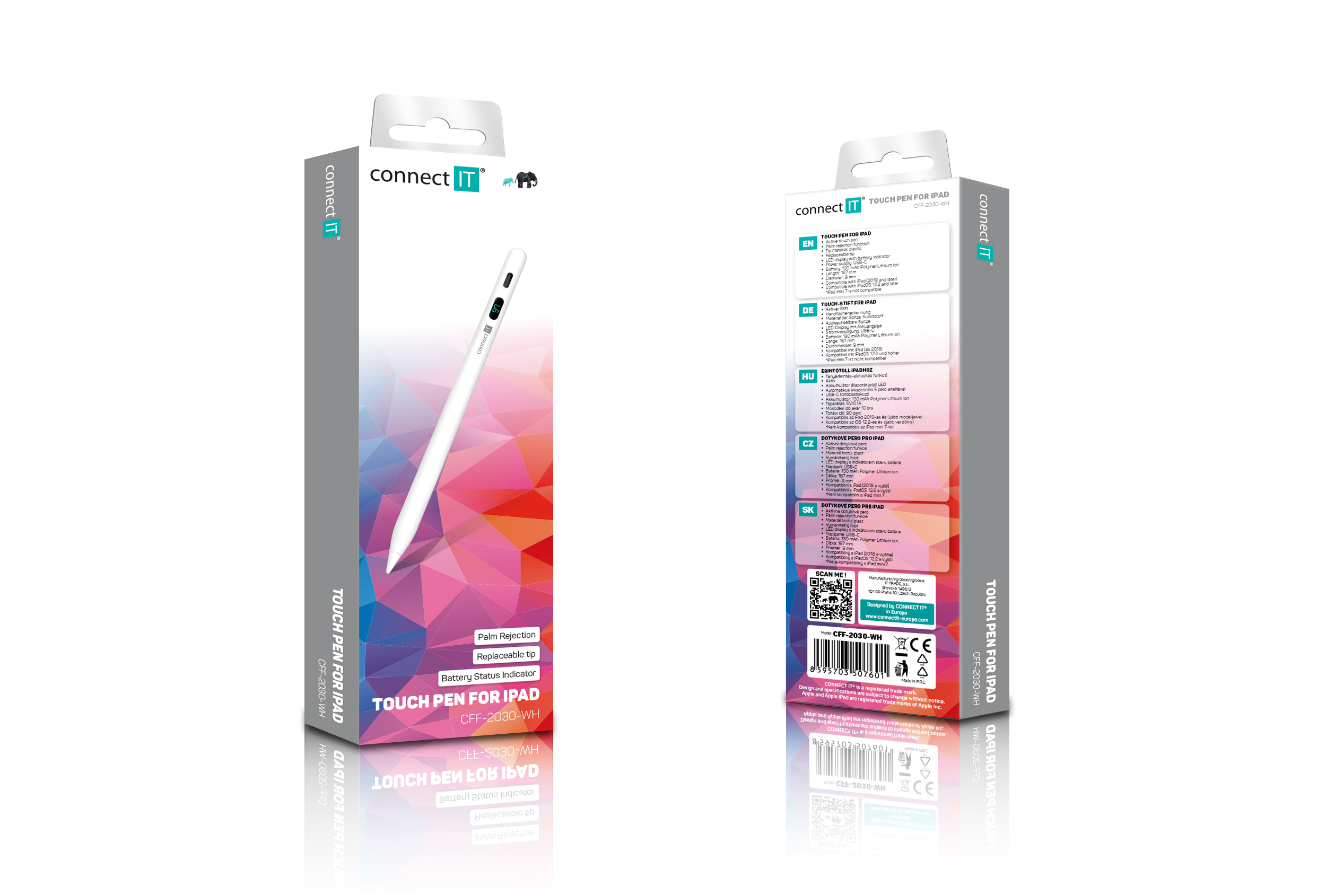 TouchPen disponuje technologií "Palm Rejection", která umožňuje psát a kreslit na dotykovém displeji tabletu s opřenou rukou, aniž by tato ruka zanechávala nežádoucí čáry nebo znaky. Technologie je navržena tak, aby automaticky ignorovala dotyky dlaně, zatímco zaznamenává dotyky a příkazy dotykového pera. Inteligentní hrot umožní snadnou úpravu a regulaci tloušťky čar pouhým nakloněním pera. Díky LED displeji budete mít vždy dokonalý přehled o stavu baterie. Balení obsahuje jeden vyměnitelný hrot navíc pro případnou výměnu.