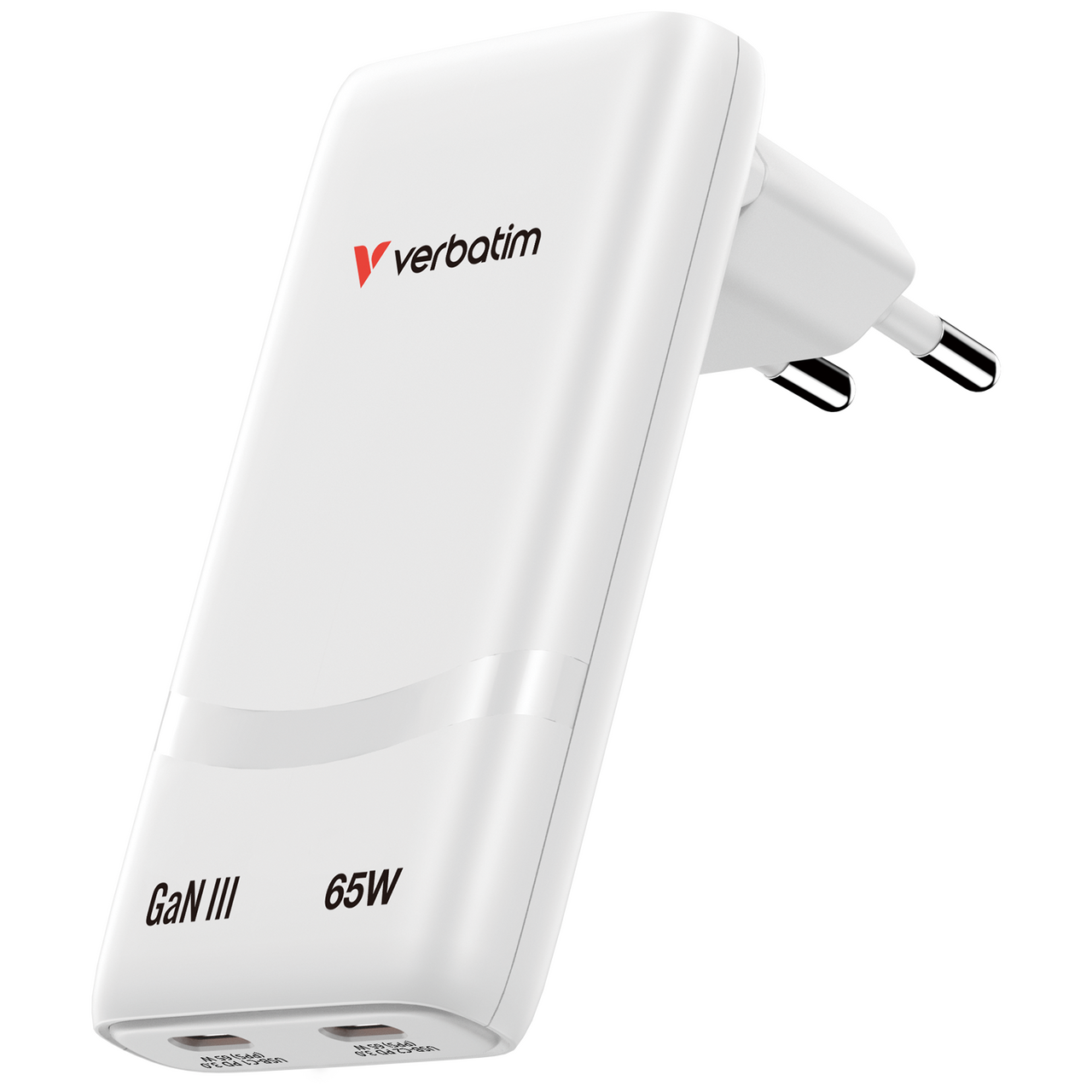 VERBATIM Fold 'n' Go GaN nabíječka 65W - 2x USB-C PD 65W - bílá