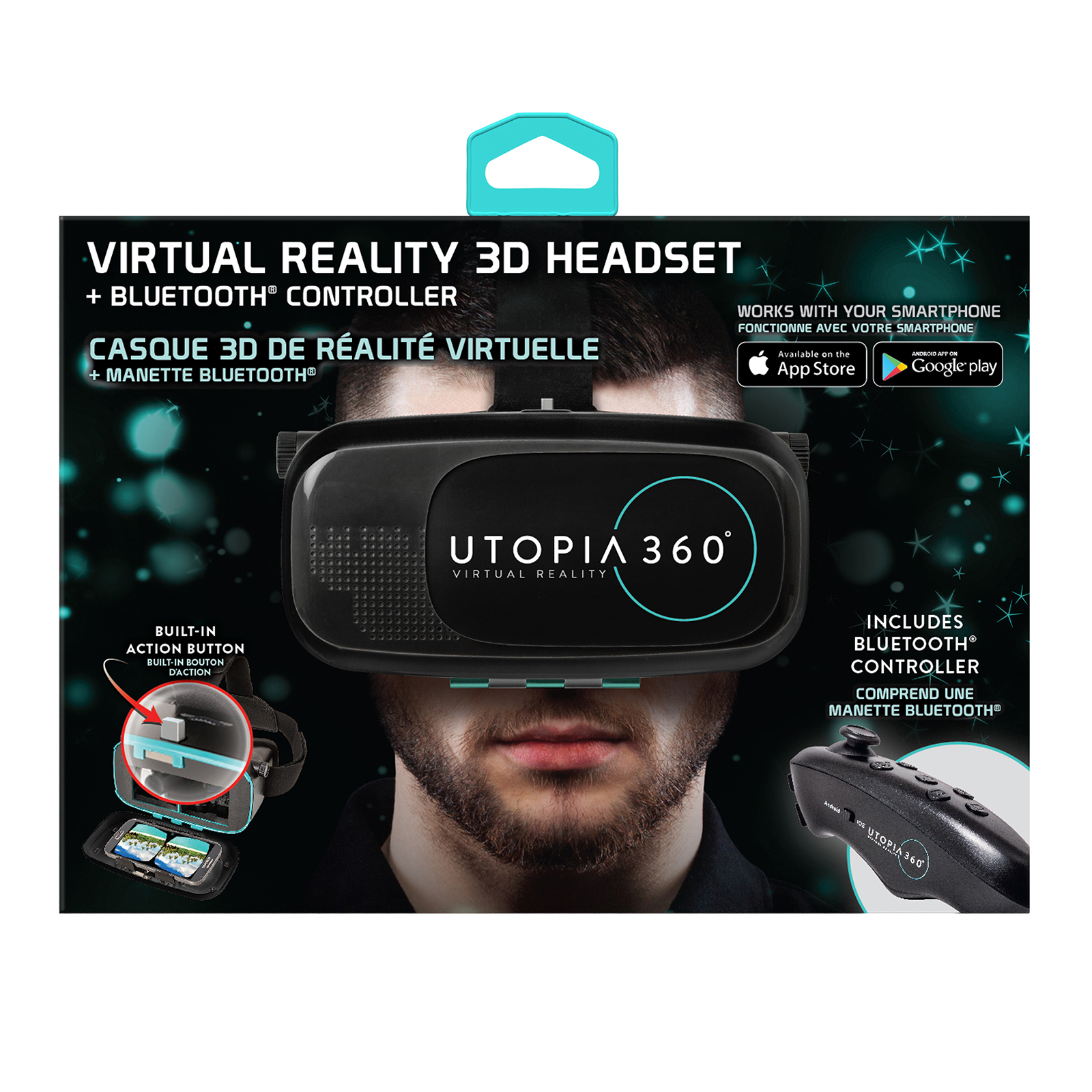 Zahrajte si hry a komunikujte s virtuálními světy pomocí náhlavní soupravy Utopia 360 ° VR a ovladače Bluetooth®. 8-tlačítkový ovladač s joystickem umožňuje pohodlnou navigaci v aplikaci a maximální interakci s kompatibilními aplikacemi.