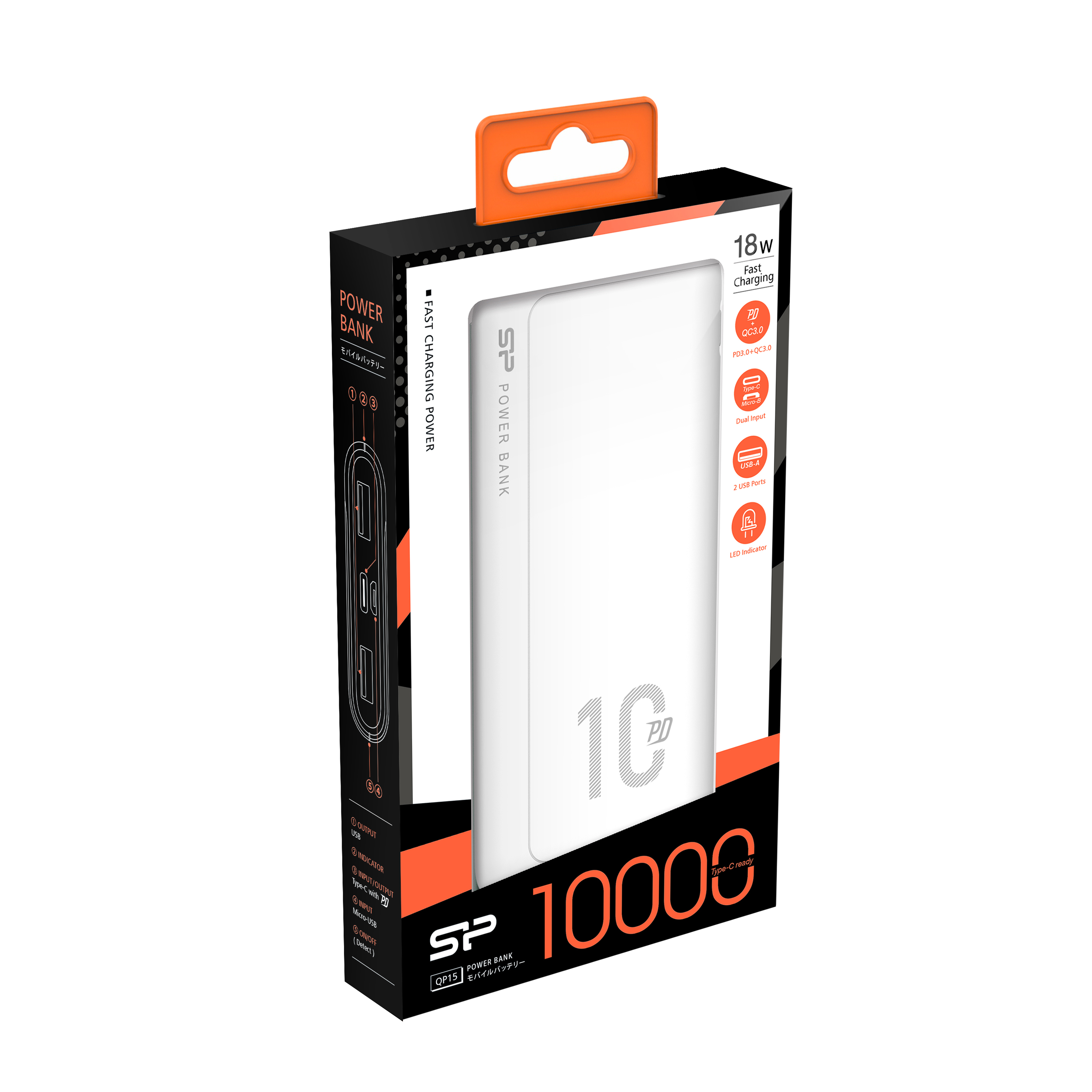 Silicon Power QP15 Powerbank 10000mAh, Li-pol, Fast Charge, bílá