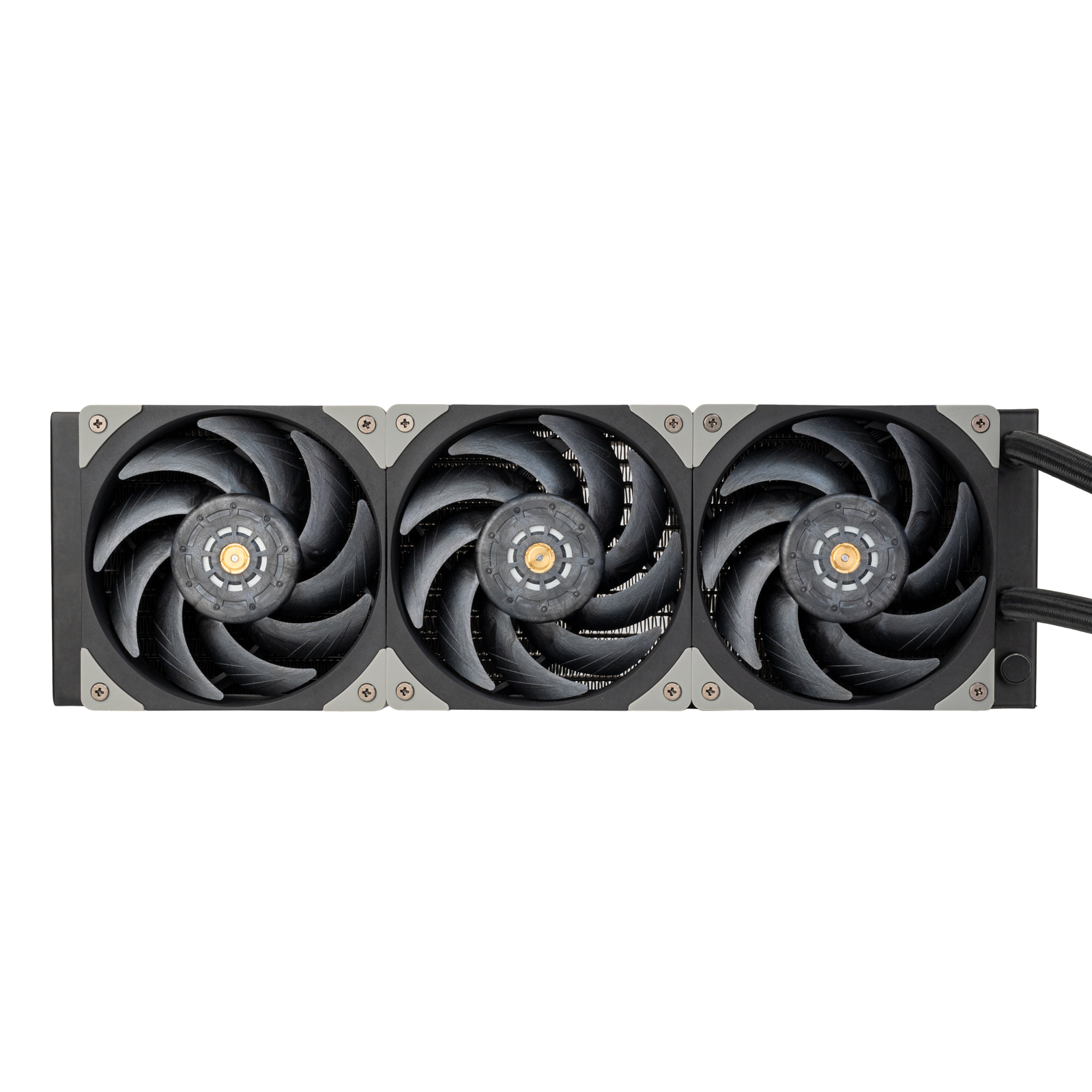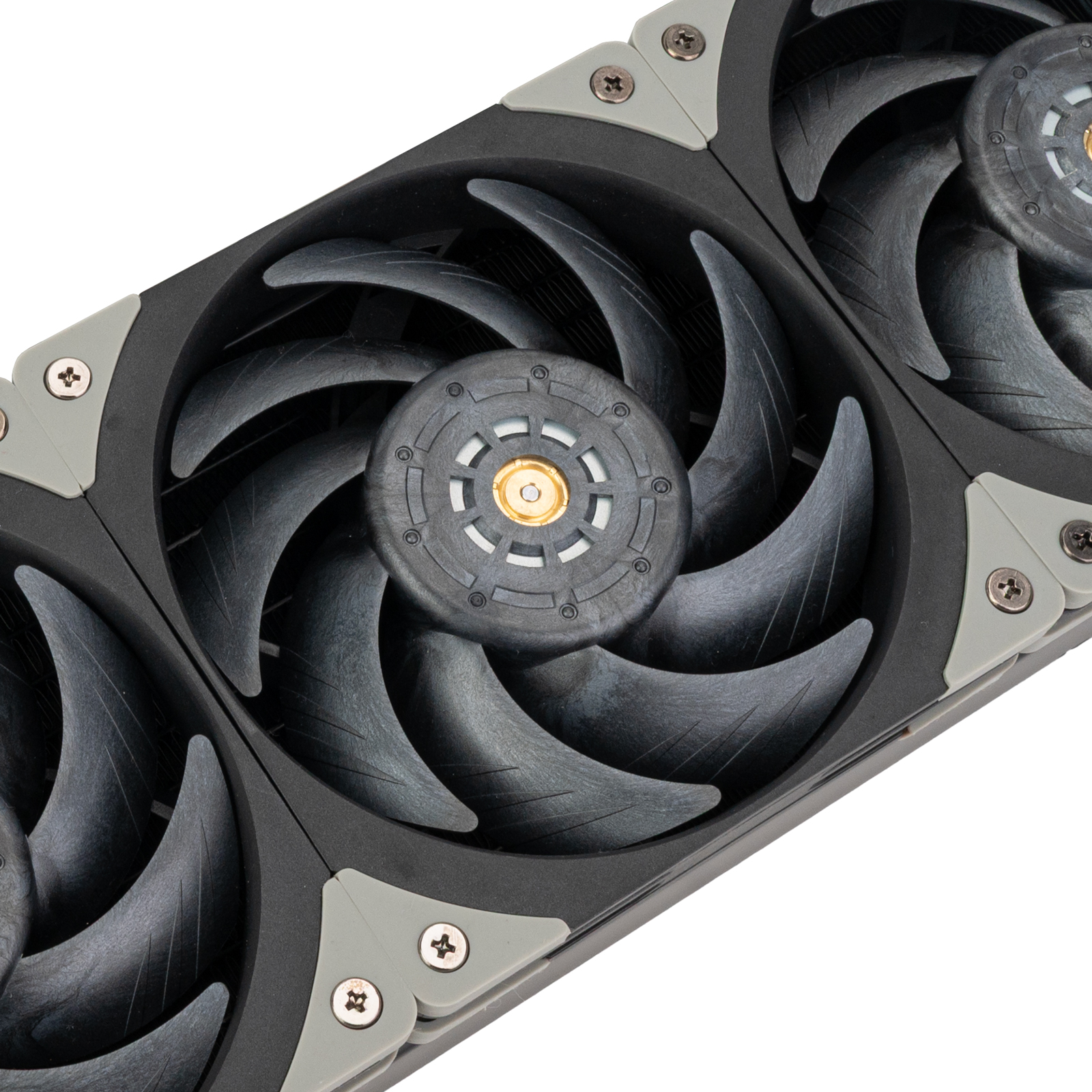 - Průmyslové 120mm ventilátory: Trojice ventilátorů optimalizovaných pro radiátor, 800-3000 rpm, lopatky z Liquid Crystal Polymer, vysoký tlak 5.2 mmH?O a průtok až 95.1 CFM.