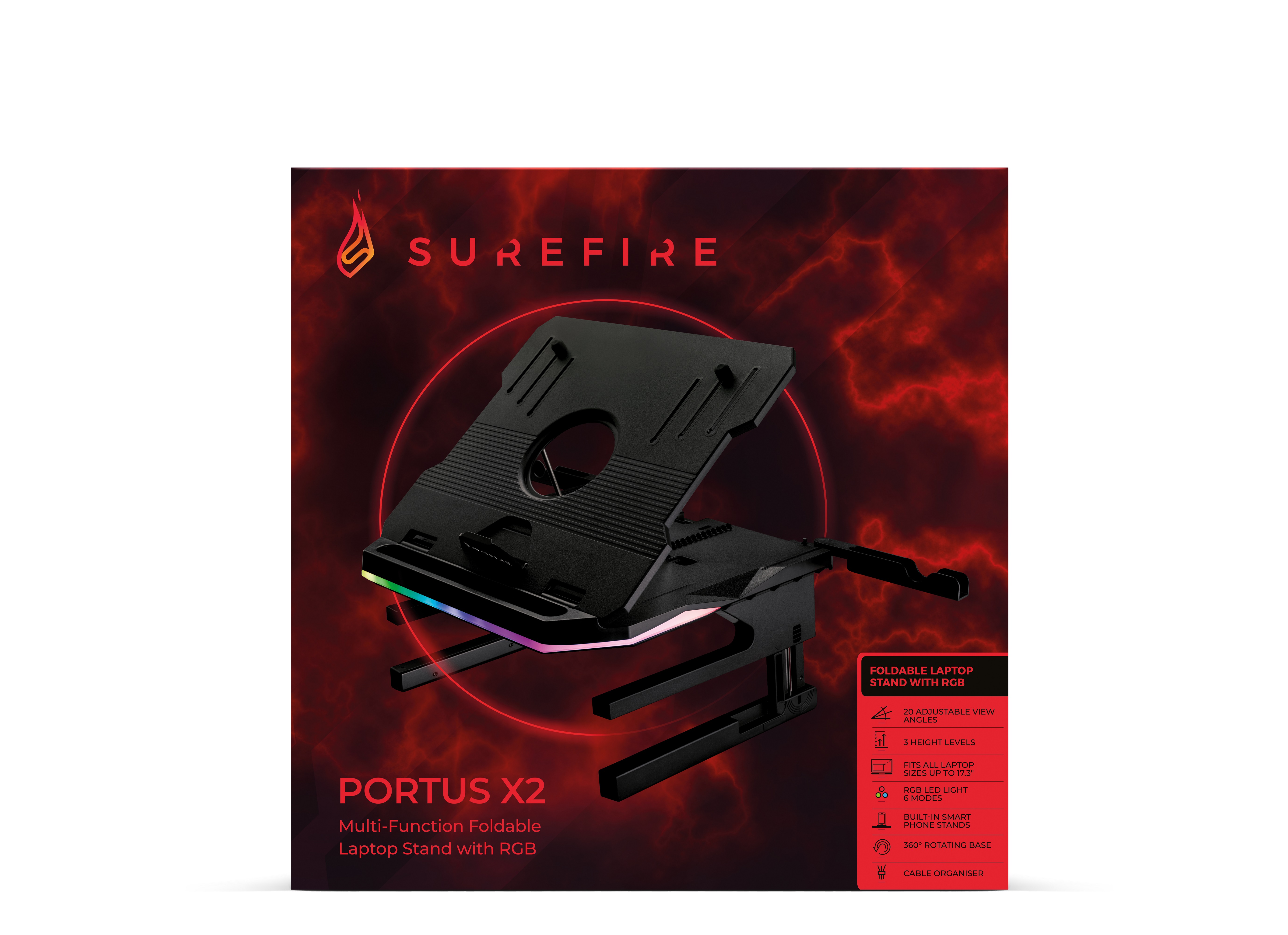 SUREFIRE Portus X2 multifunkční stojan na notebook s RGB podsvícením