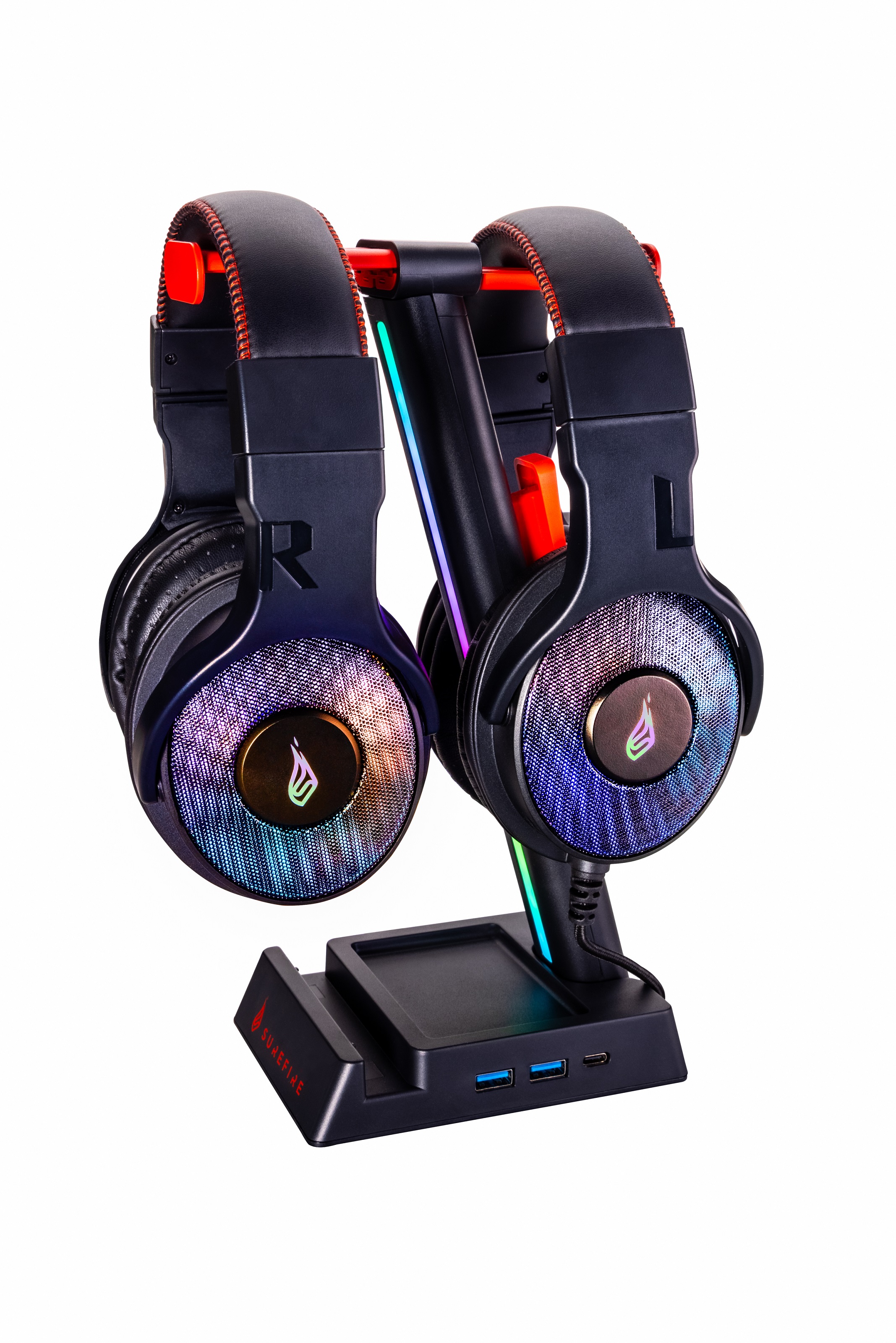 SUREFIRE Vinson N2 RGB herní držák na sluchátka s USB rozbočovačem, černý