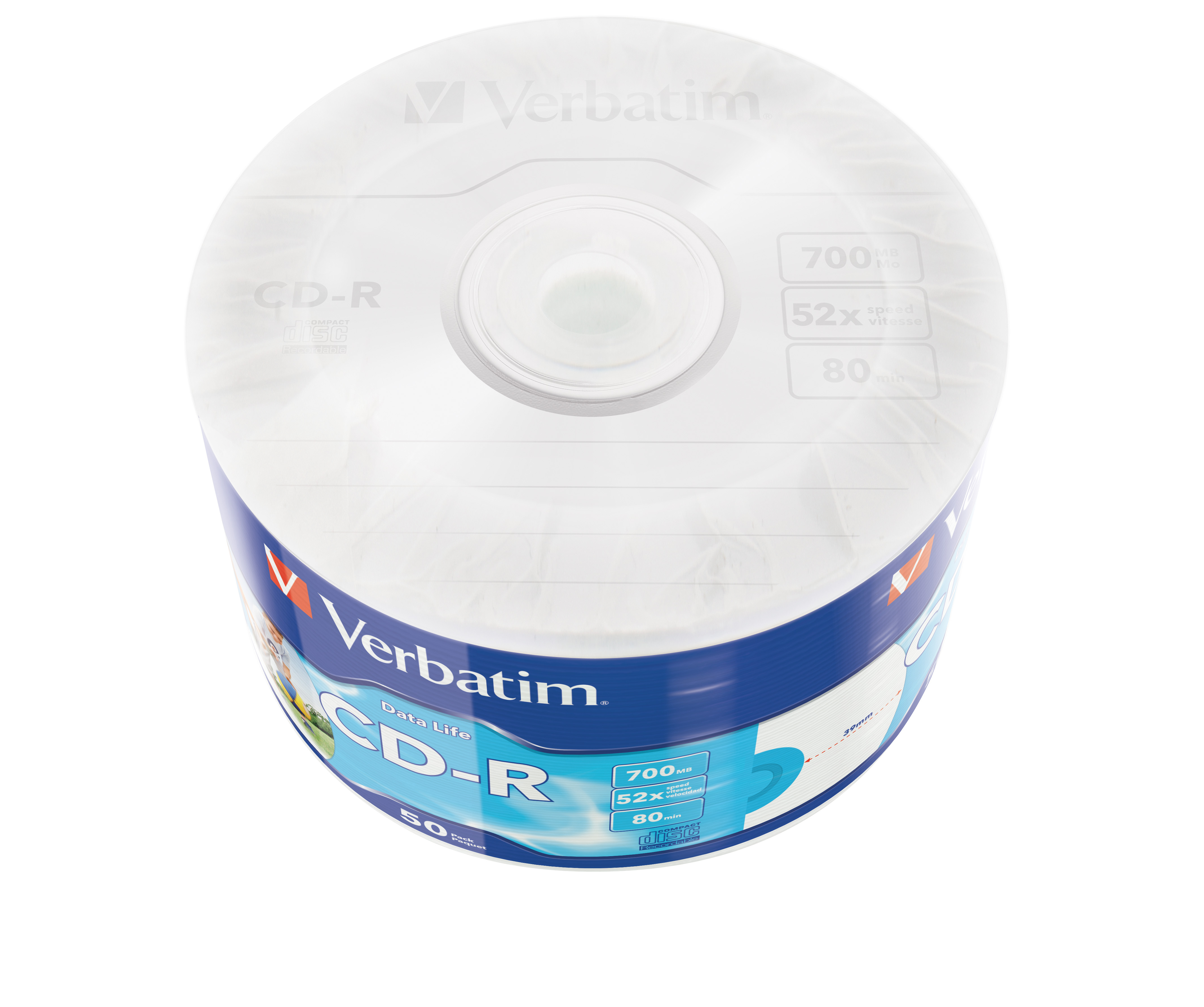 VERBATIM CD-R DataLife 700MB, 52x, printable, wrap 50 ks