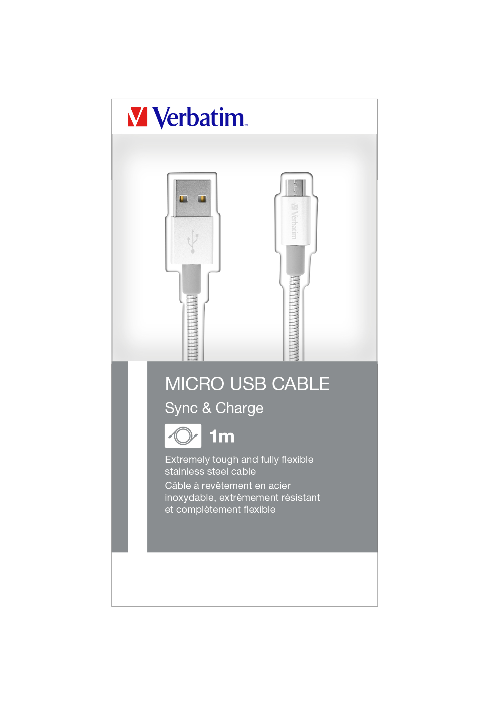 VERBATIM MICRO B USB CABLE SYNC & CHARGE 100CM SILVER