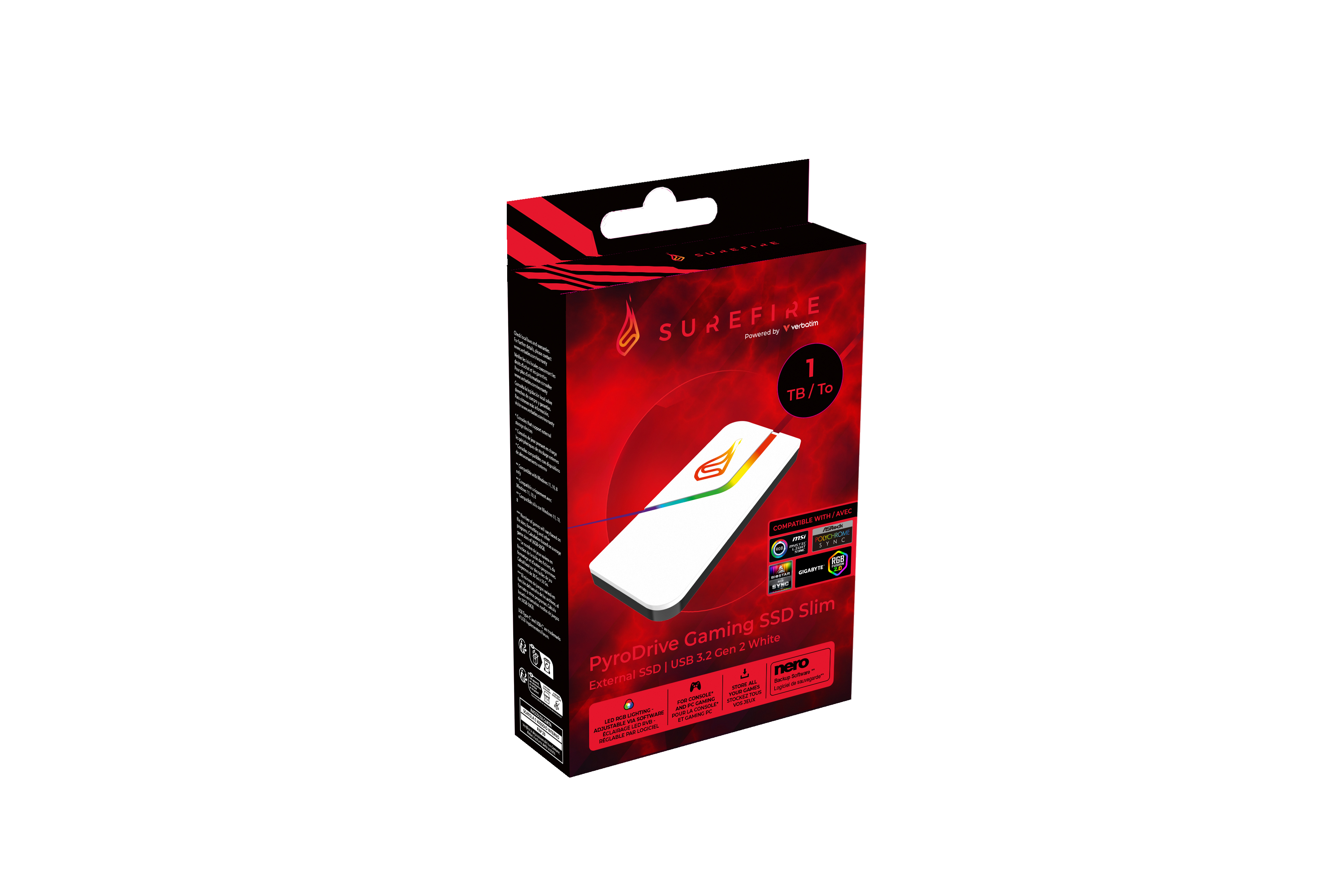VERBATIM SUREFIRE PyroDrive Gaming SSD Slim, USB-C 3.2 Gen 2, 1TB, bílý