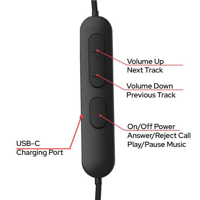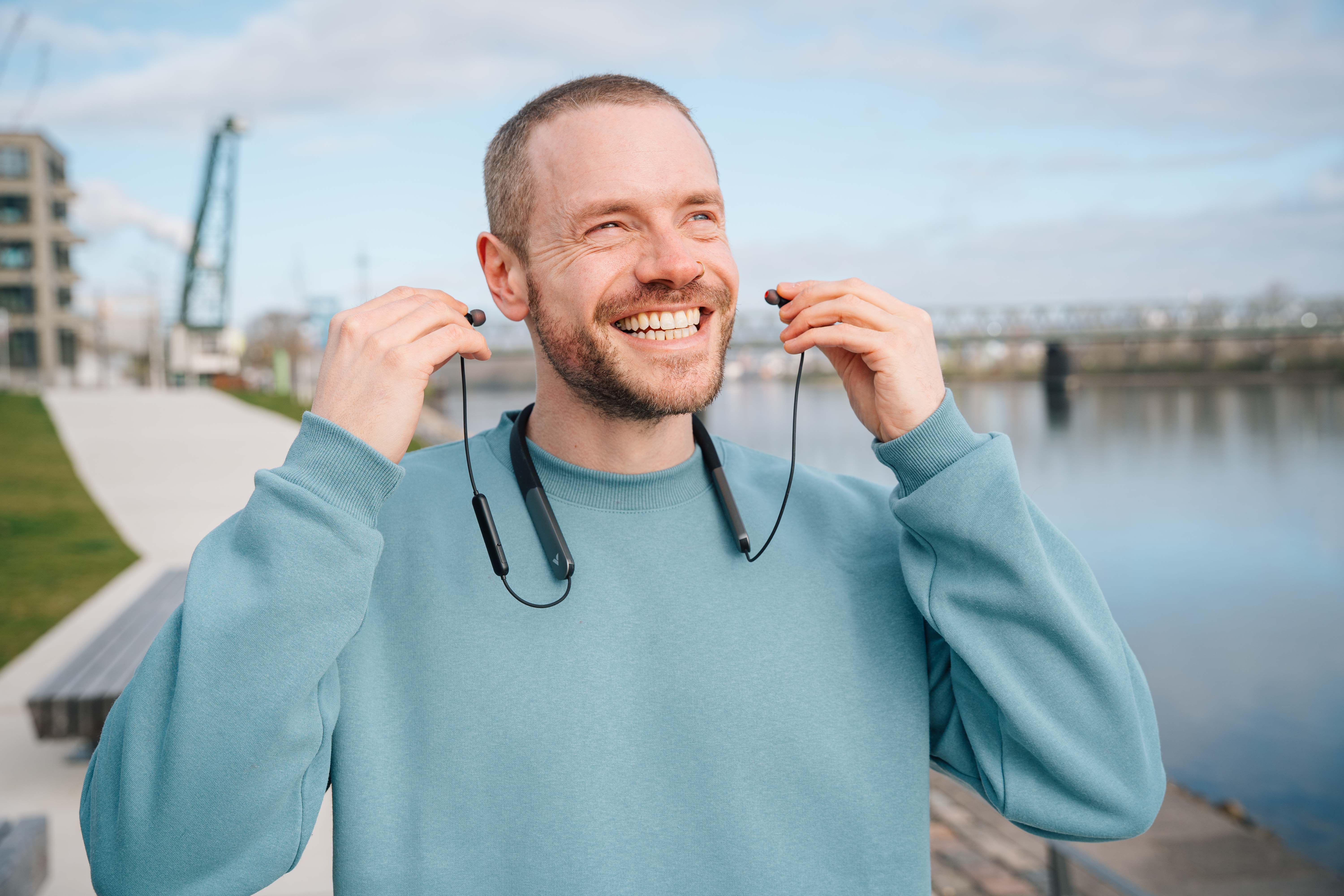 - Typ sluchátek: Špunty s týlním mostem (Neckband)