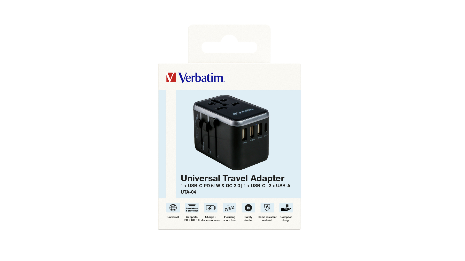 VERBATIM UTA-04 Universal Travel Adapter with 1 x USB-C PD 61W & QC 3.0 / 1 x USB-C / 3 x USB-A