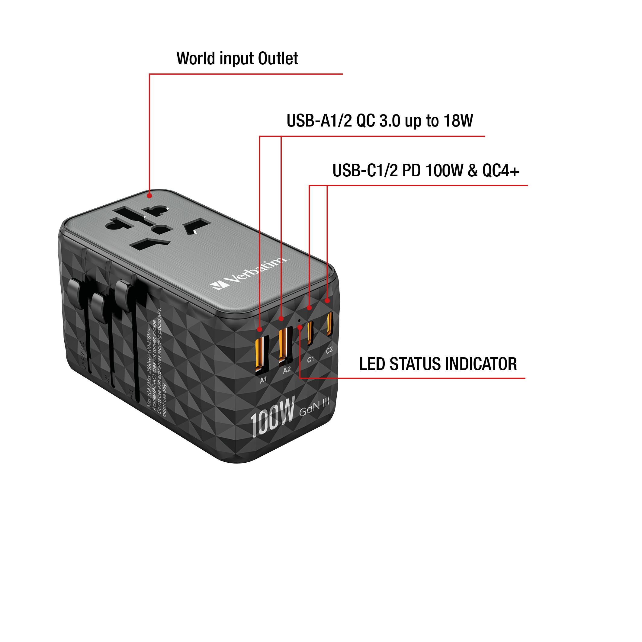 VERBATIM UTA-06 GaN III Universal Travel Adapter 100W
