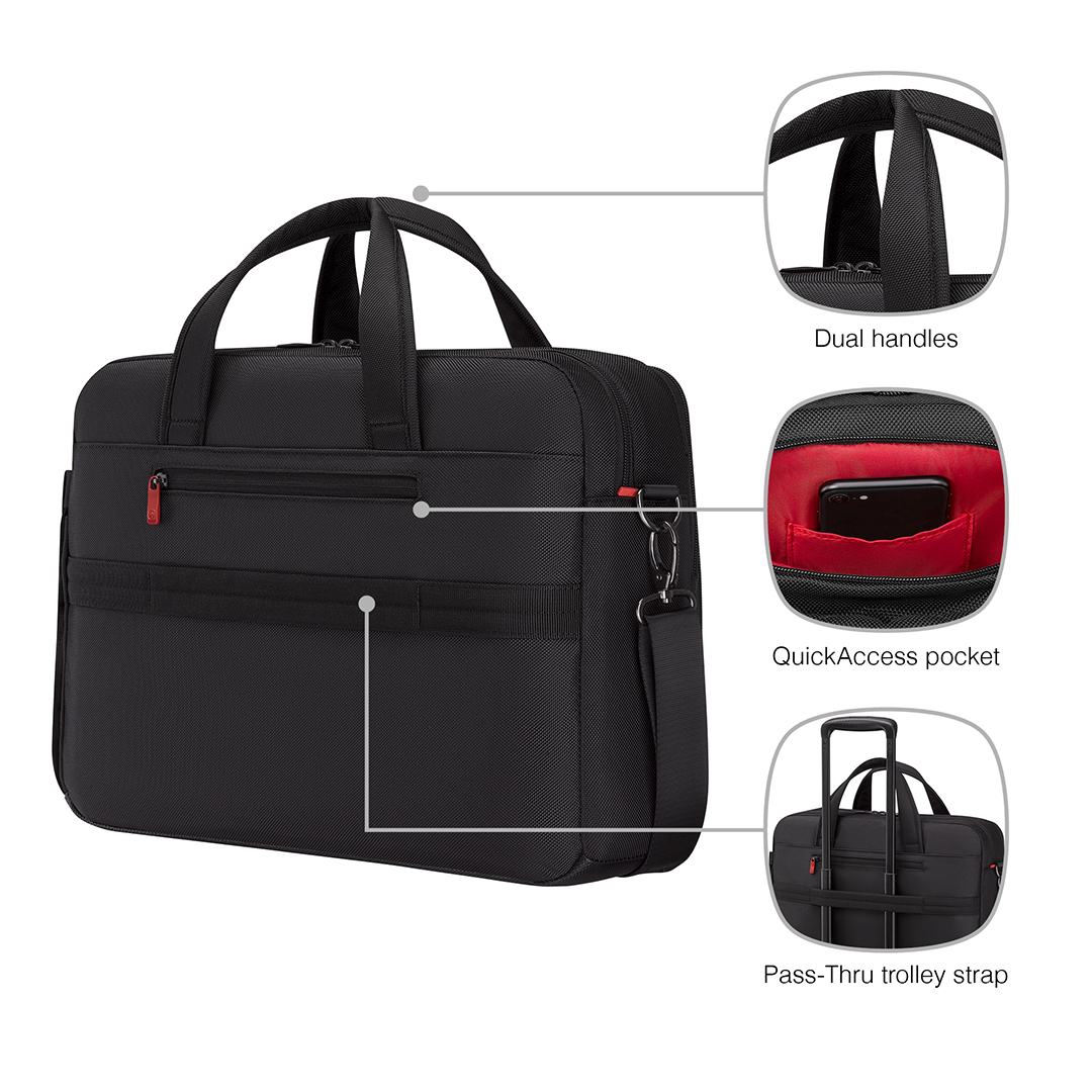 - Cestovní komfort: Pass-Thru popruh umožňuje připevnění na madlo kufru s kolečky.